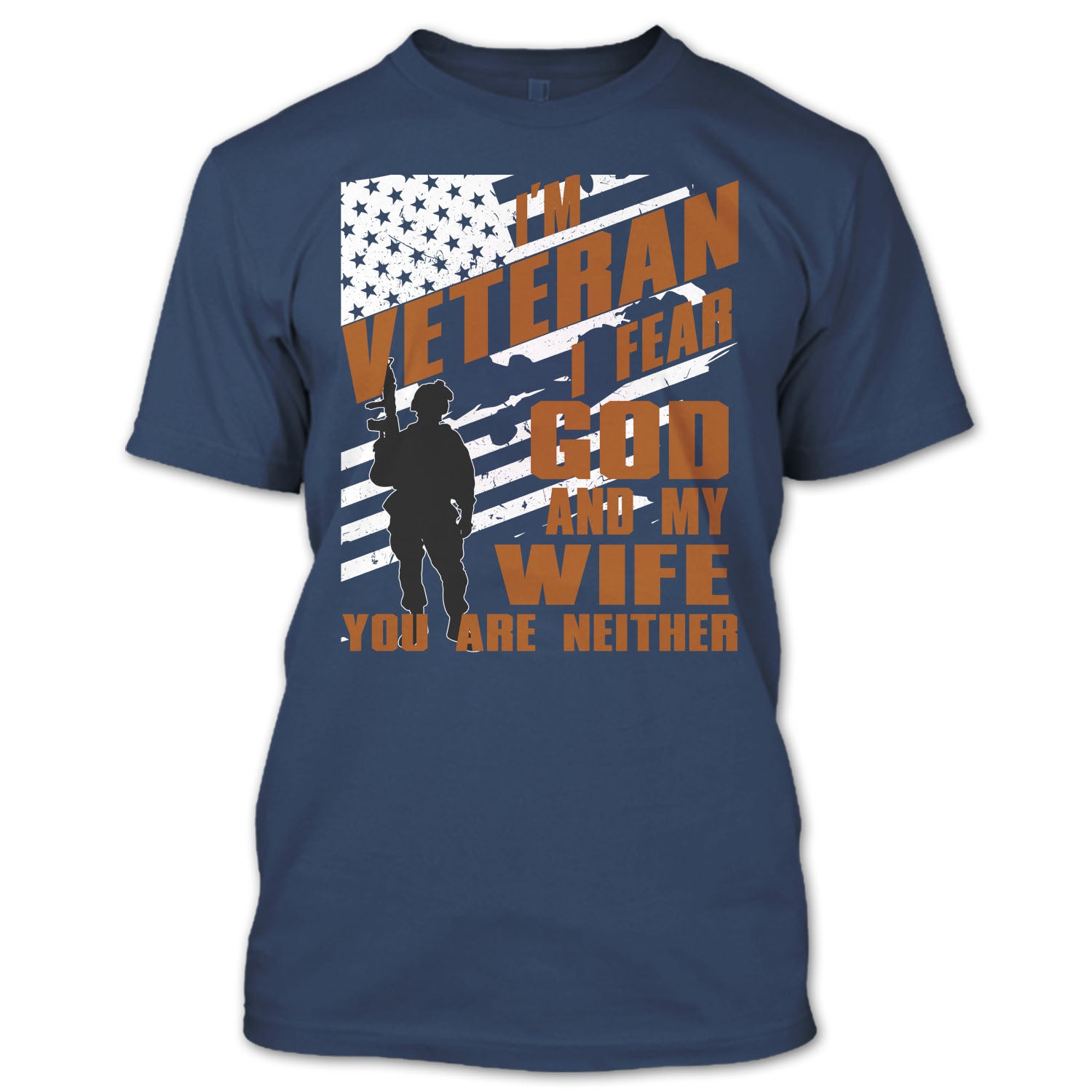 I'm Veteran T Shirt, I Fear God And My Wife T Shirt