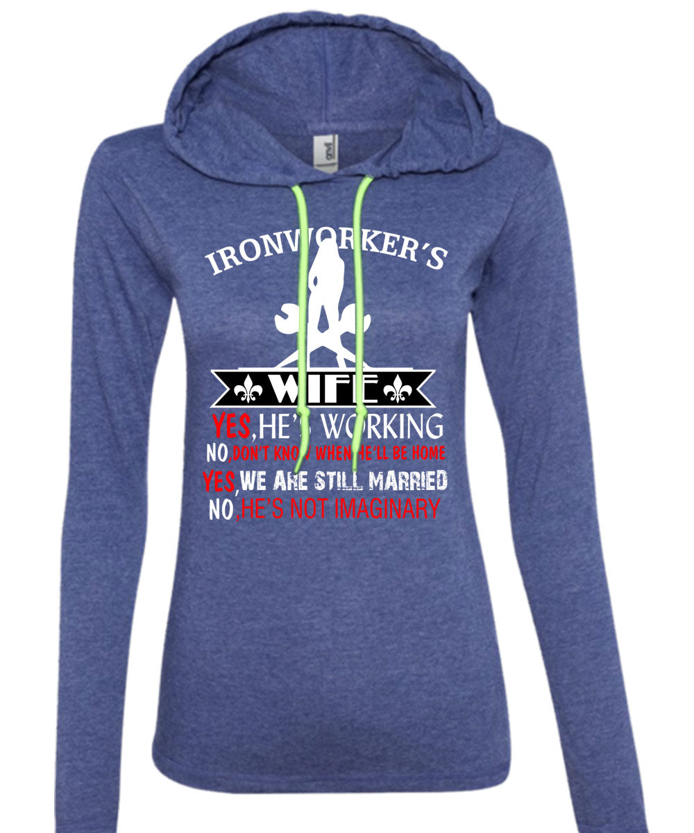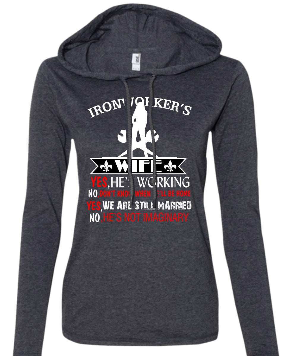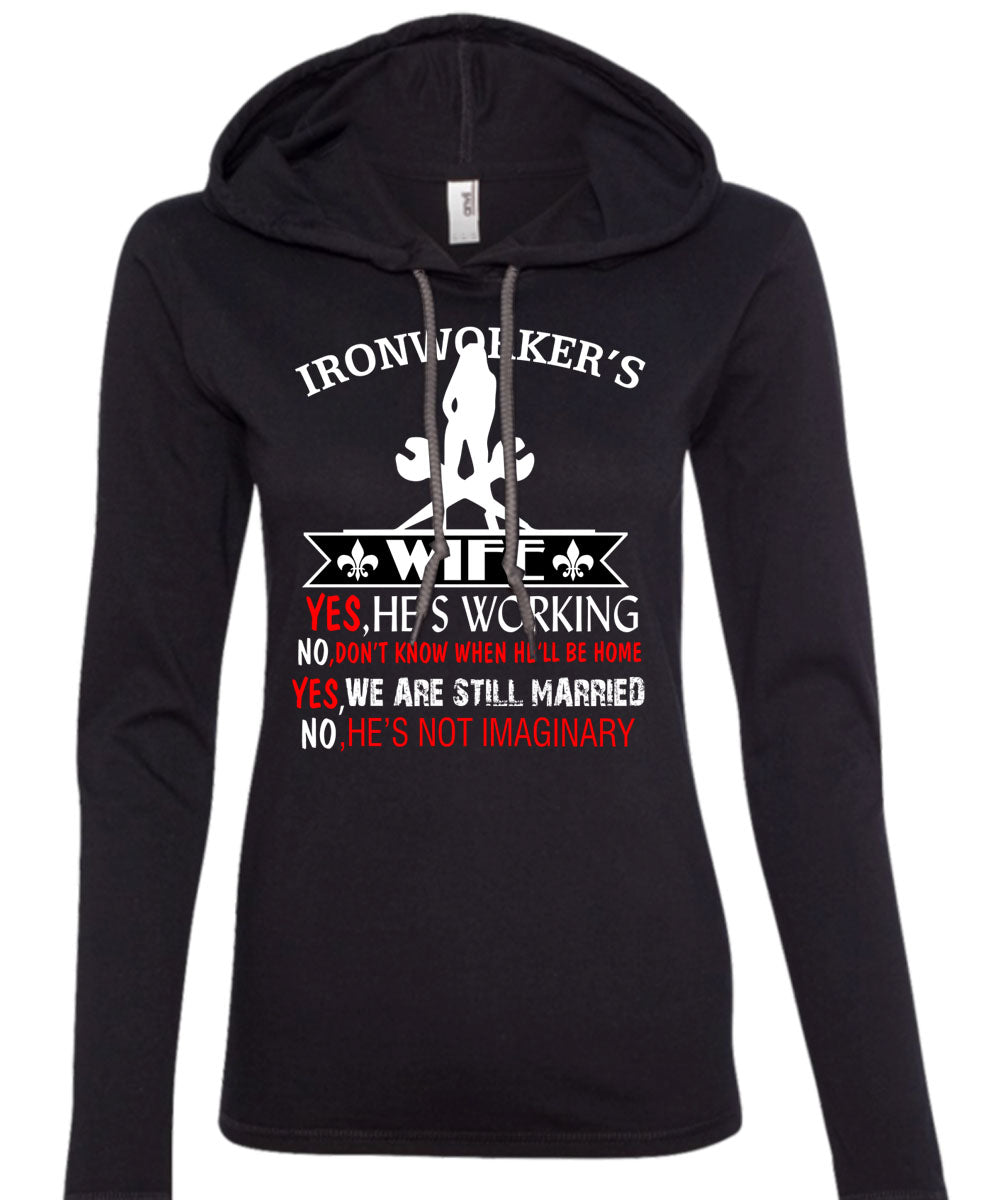 Ironworker's Wife He's Working T Shirt, We Are Still Married T Shirt (Anvil Ladies Ringspun Hooded)