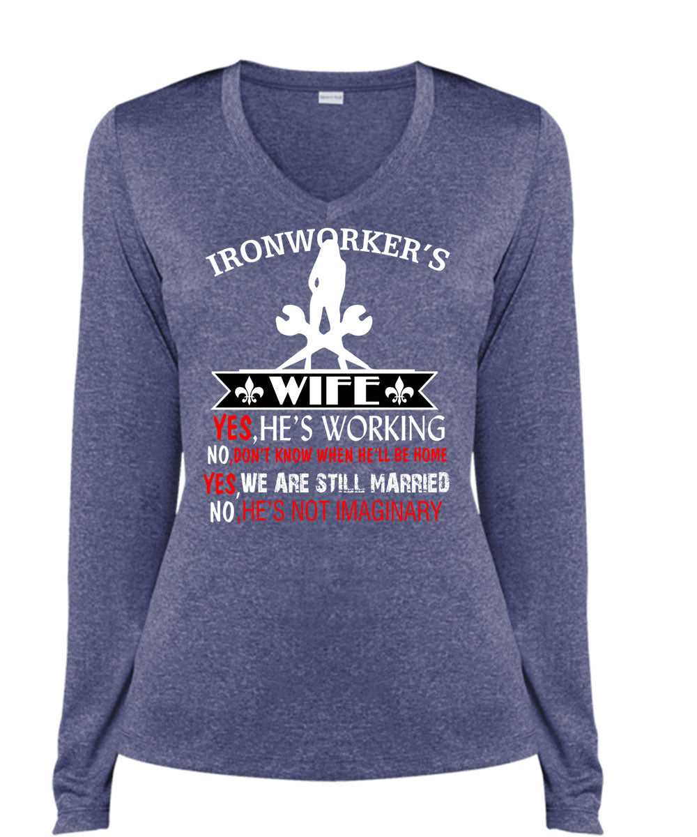 Ironworker's Wife He's Working T Shirt, We Are Still Married T Shirt, Cool Shirt (Ladies LS Heather V-Neck)