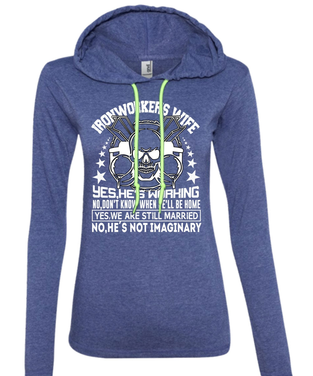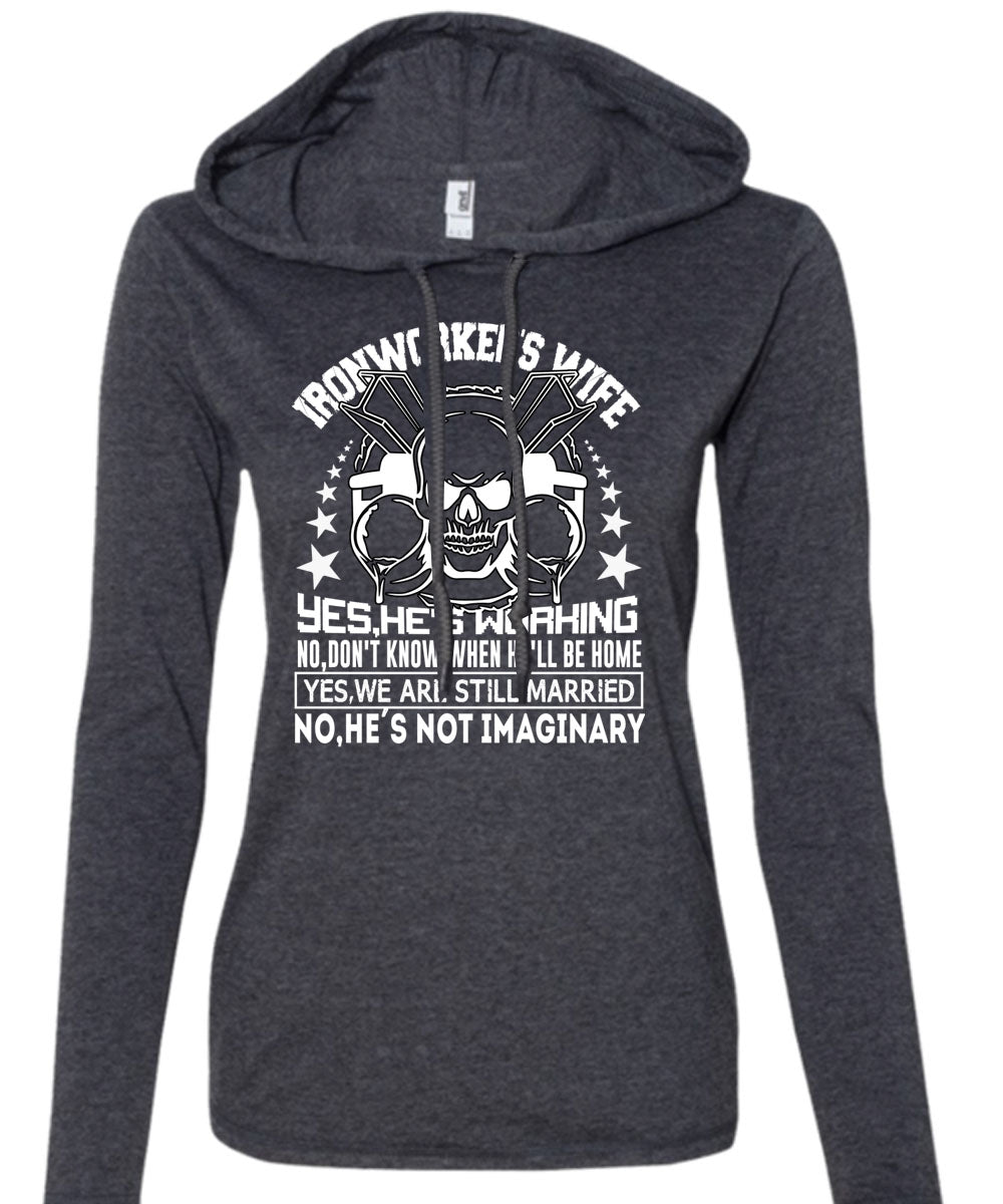Ironworker's Wife T Shirt, He's Not Imaginary T Shirt (Anvil Ladies Ringspun Hooded)