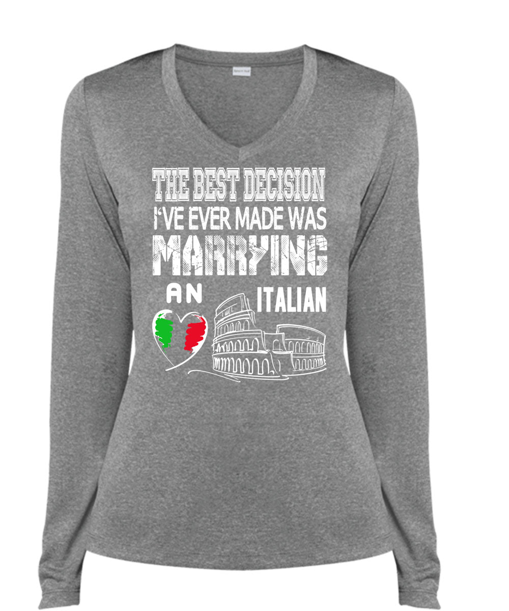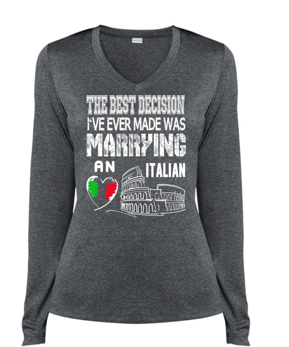 I've Ever Made Was Marrying An Italian T Shirt, I Love Husband T Shirt, Cool Shirt (Ladies LS Heather V-Neck)