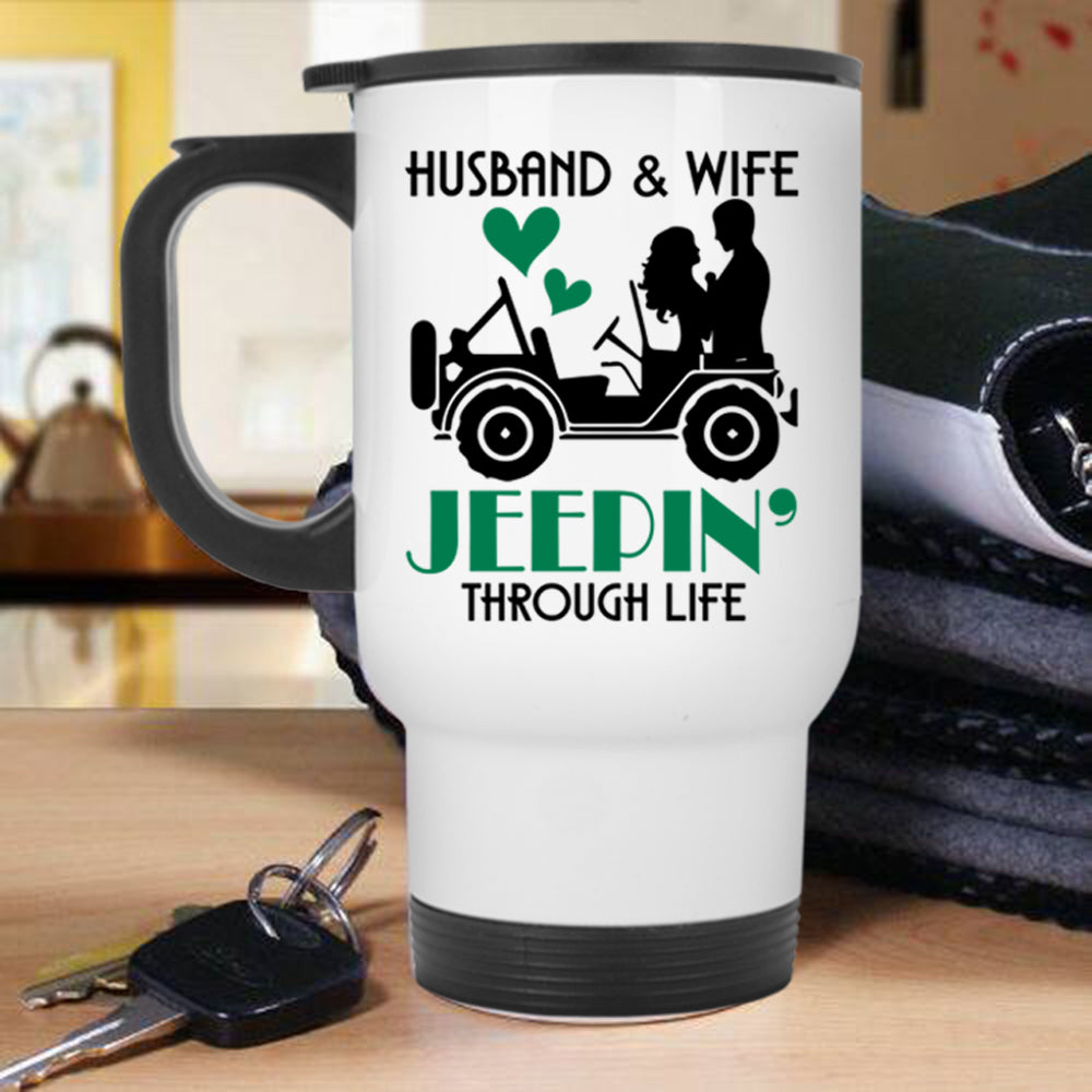 Jeeping Through Life Travel Mug, Husband And Wife Mug