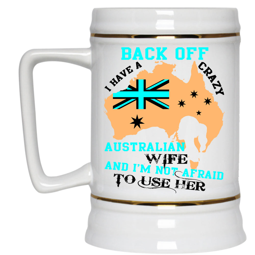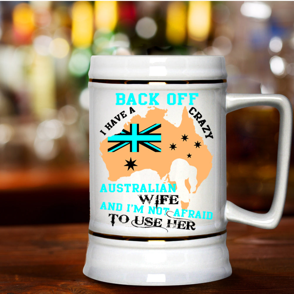 Just Married Beer Stein 22oz, I Have A Crazy Australian Wife Beer Mug