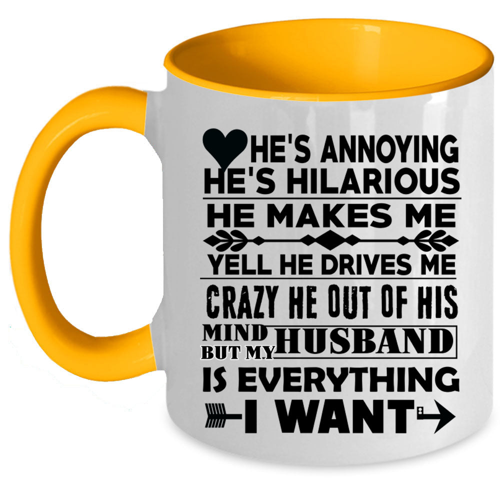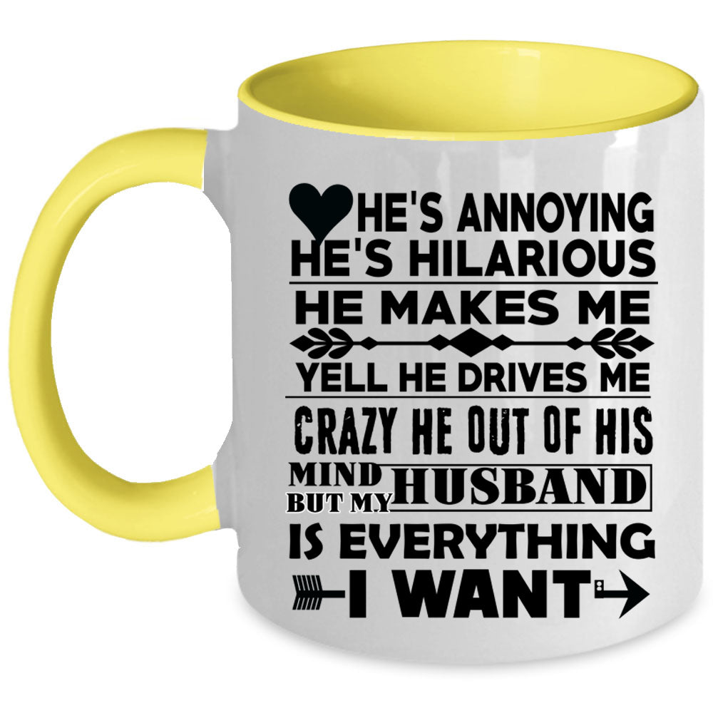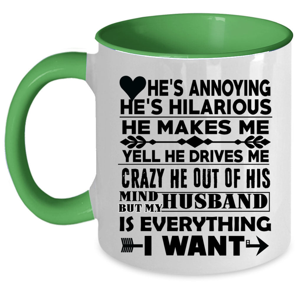Just Married Coffee Mug, My Husband Is Everything I Want Accent Mug