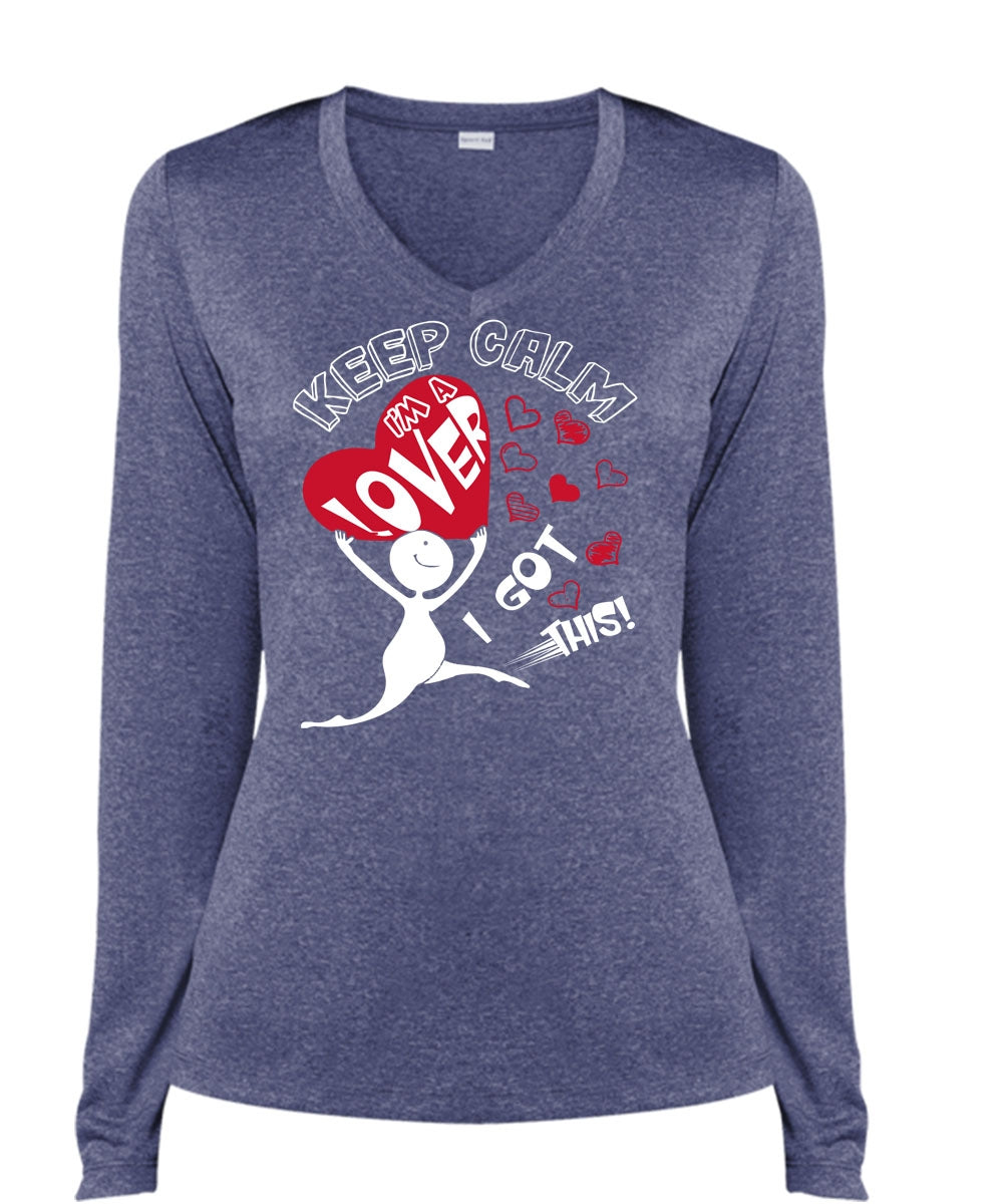 Keep Calm I'm A Lover T Shirt, I Love Husband T Shirt, Cool Shirt (Ladies LS Heather V-Neck)