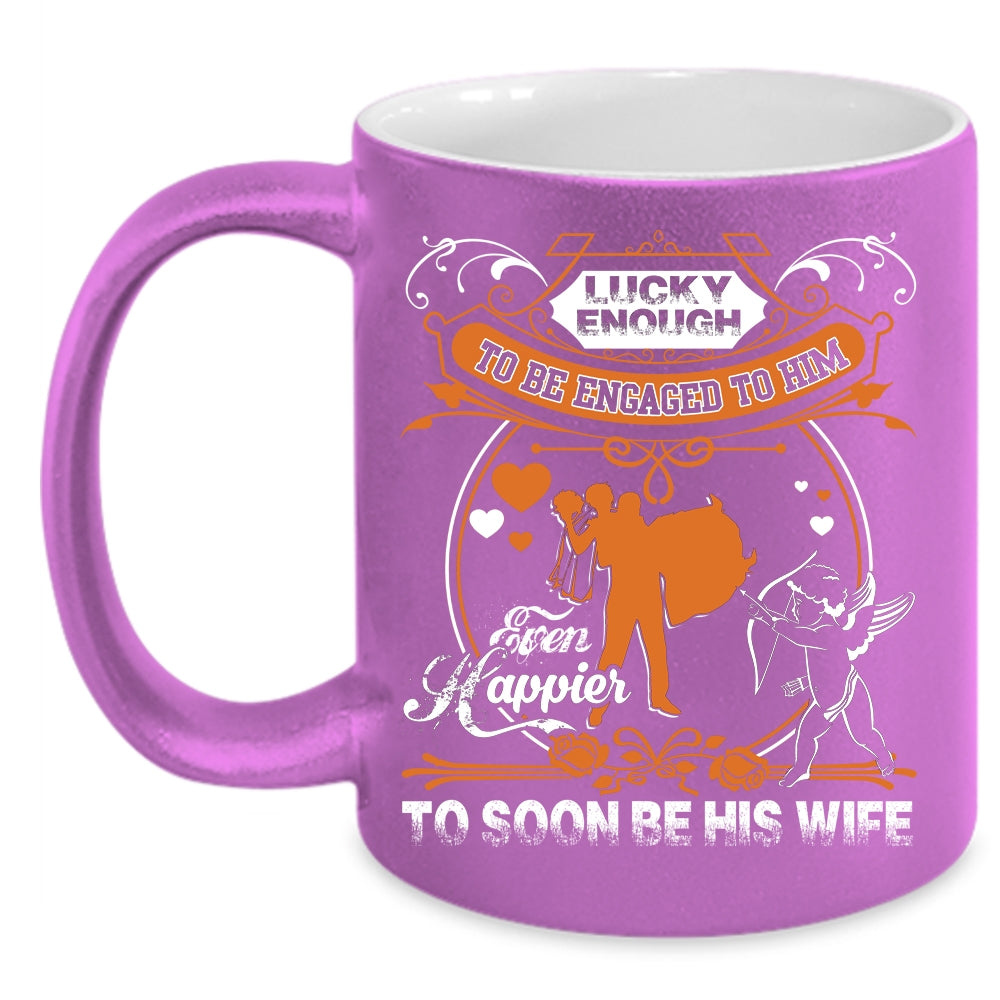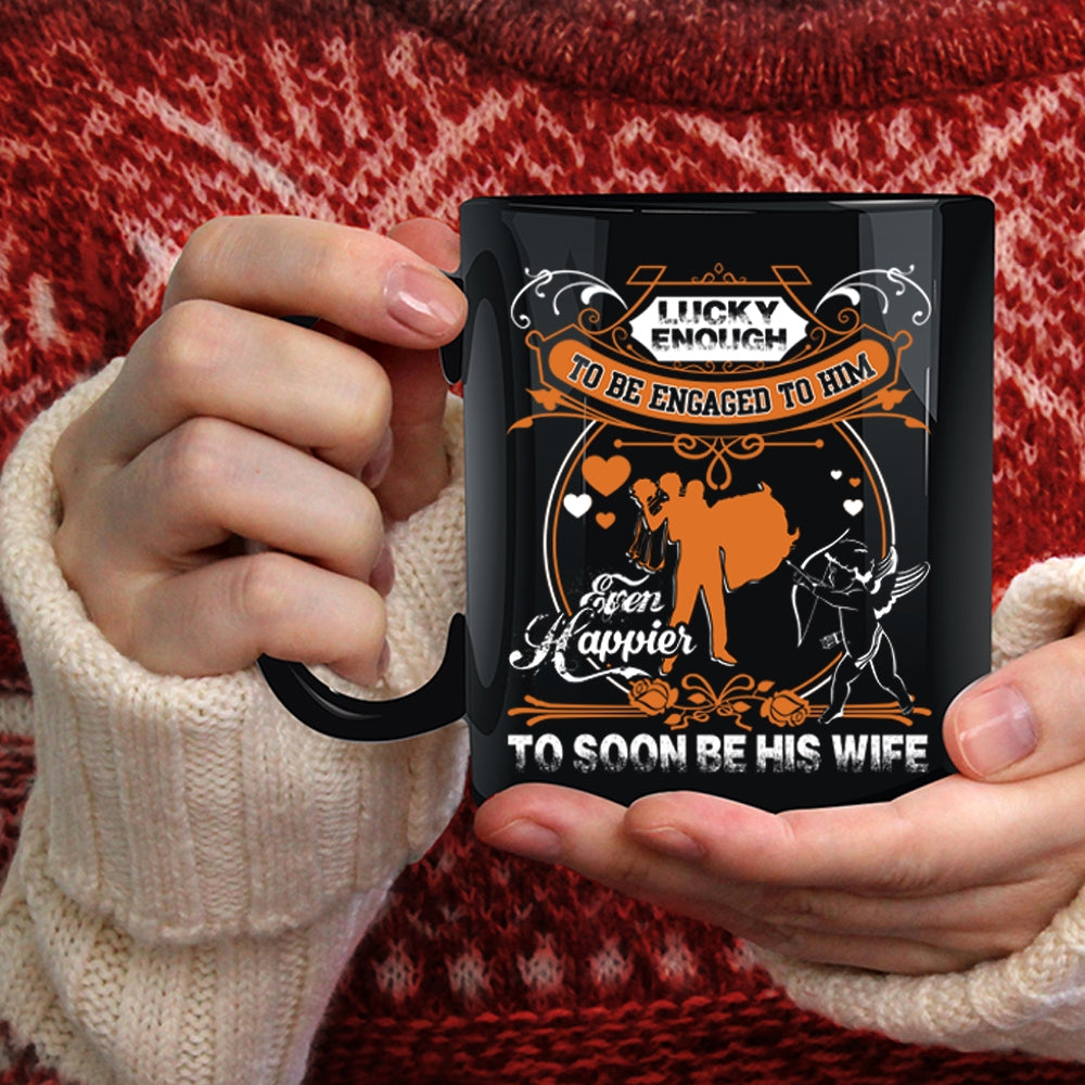 Licky Enough To Be Engaged To Him Coffee Mug, Happier To Soon Be His Wife Coffee Cup