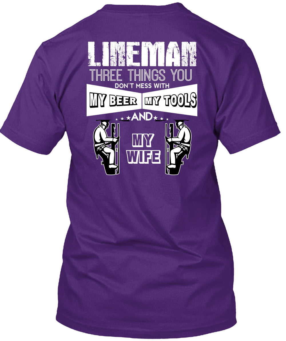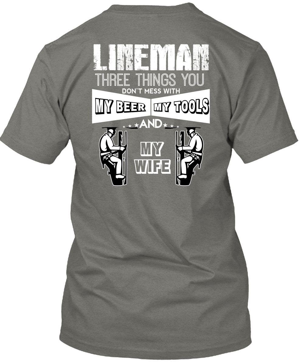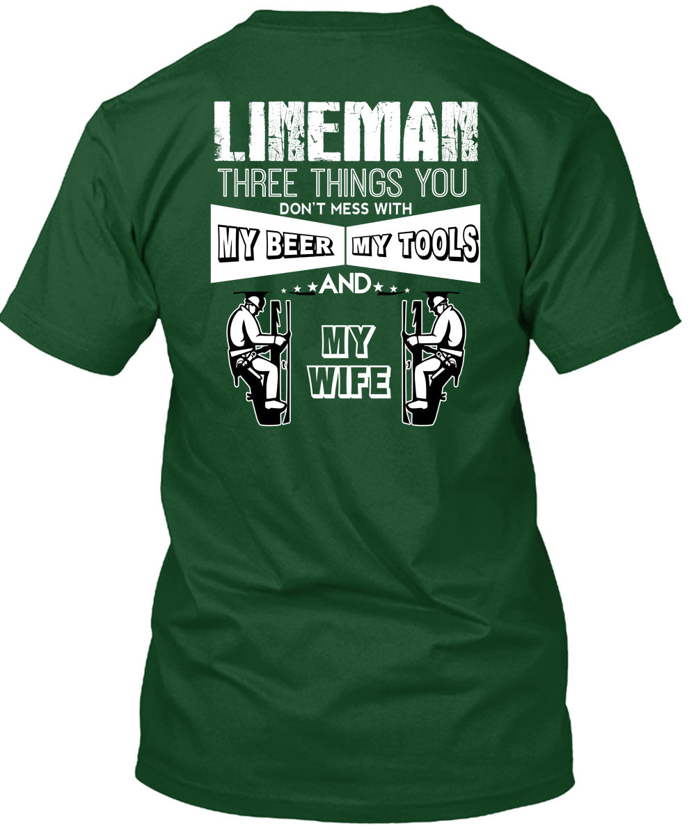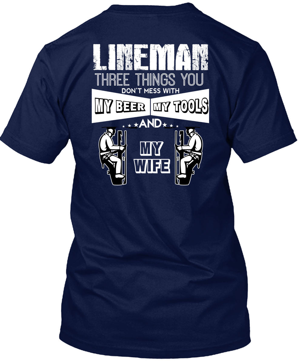 Lineman Three Things You Don't Mess T Shirt, My Beer Amy Tools And My Wife T Shirt