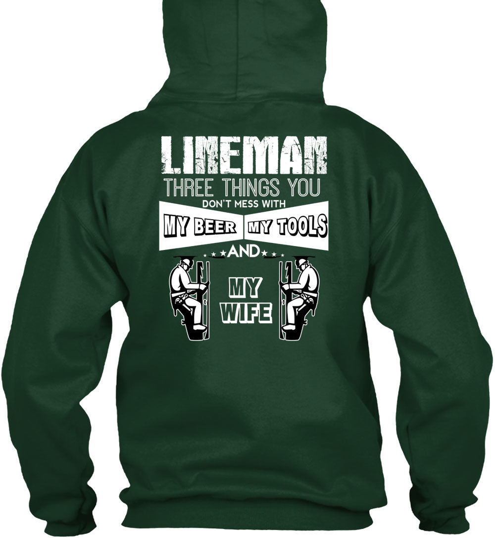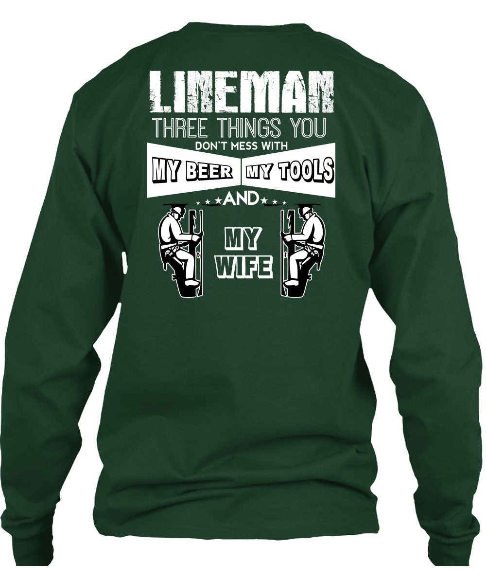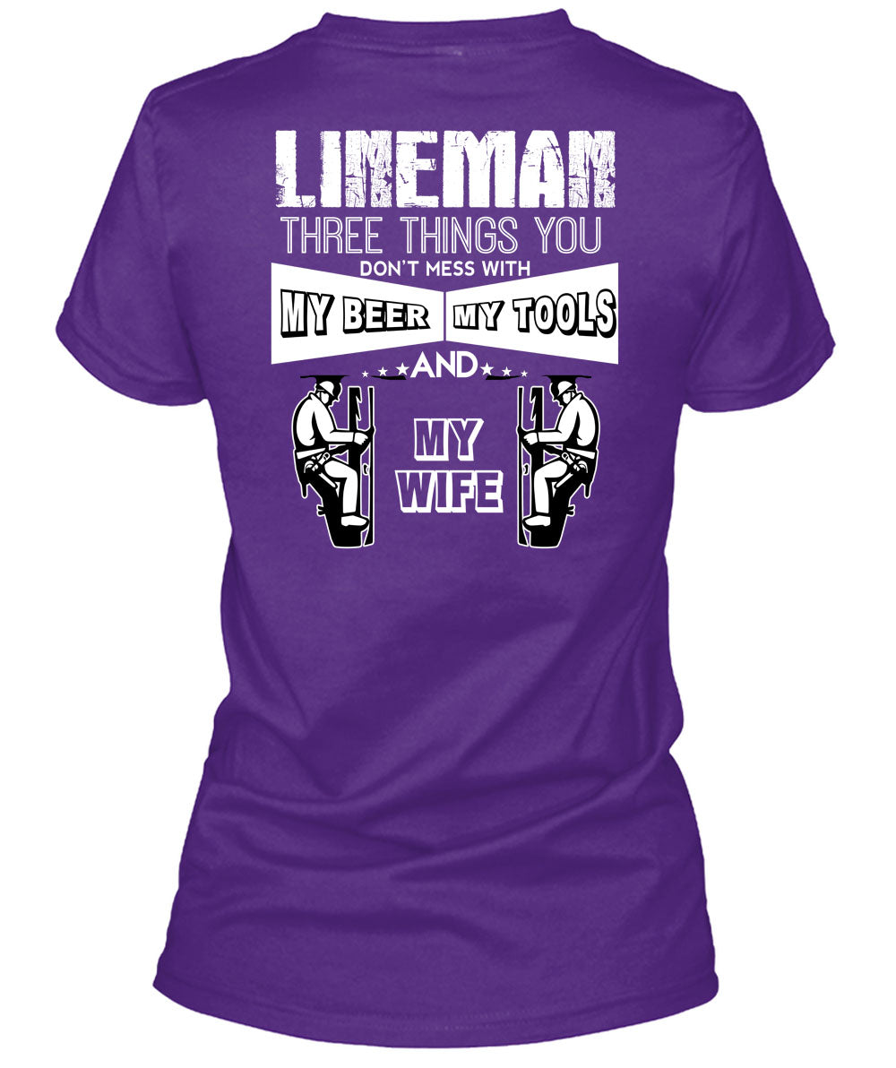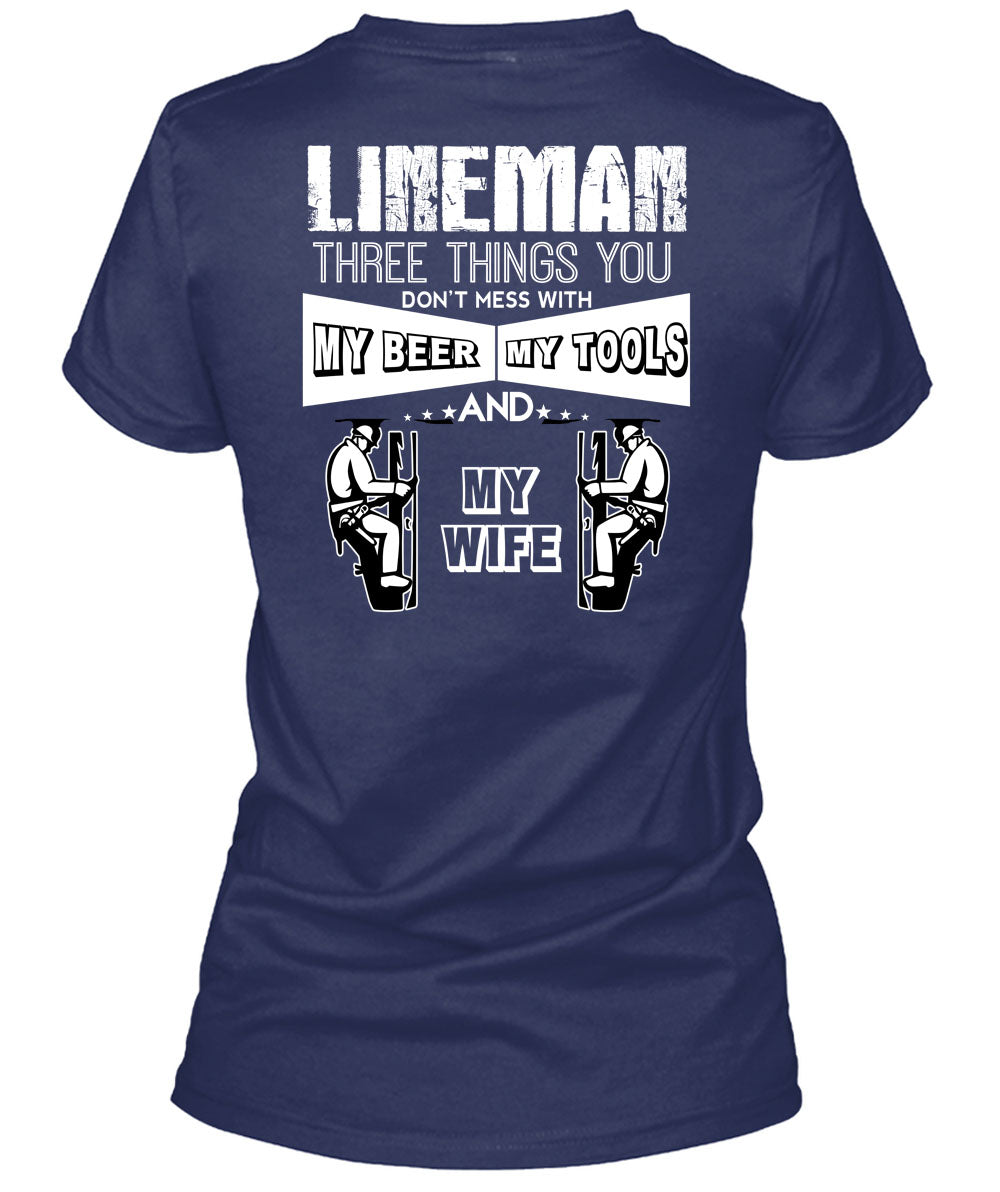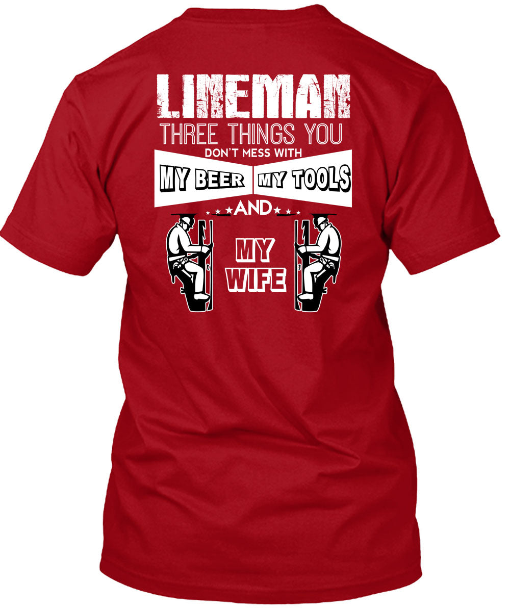 Lineman Three Things You Don't Mess T Shirt, My Beer Amy Tools And My Wife T Shirt