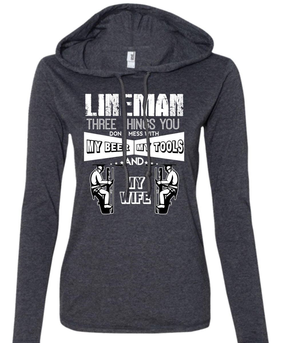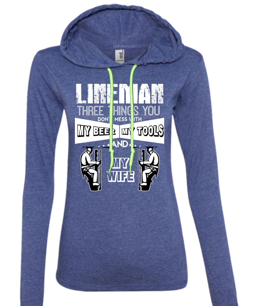 Lineman Three Things You Don't Mess T Shirt, My Beer Amy Tools And My Wife T Shirt (Anvil Ladies Ringspun Hooded)