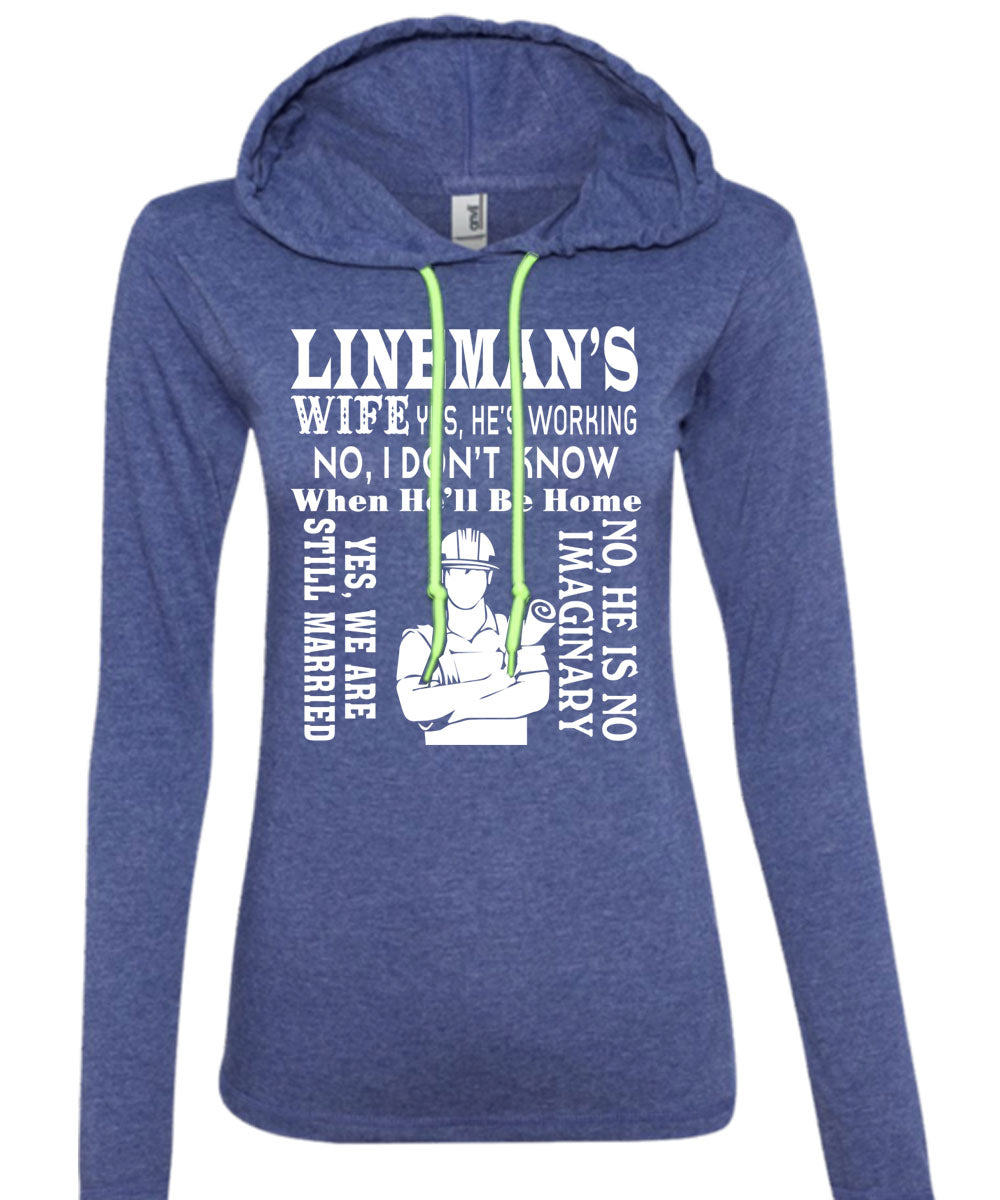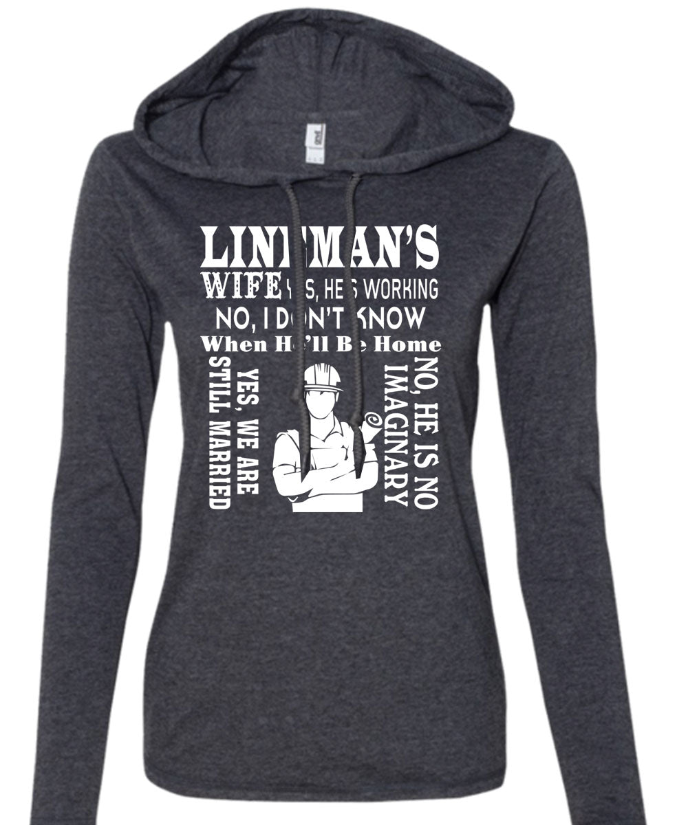 Lineman's Wife He's Working T Shirt, We Are Still Married T Shirt (Anvil Ladies Ringspun Hooded)