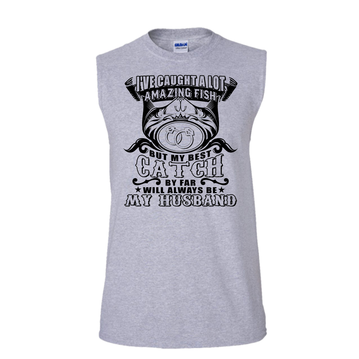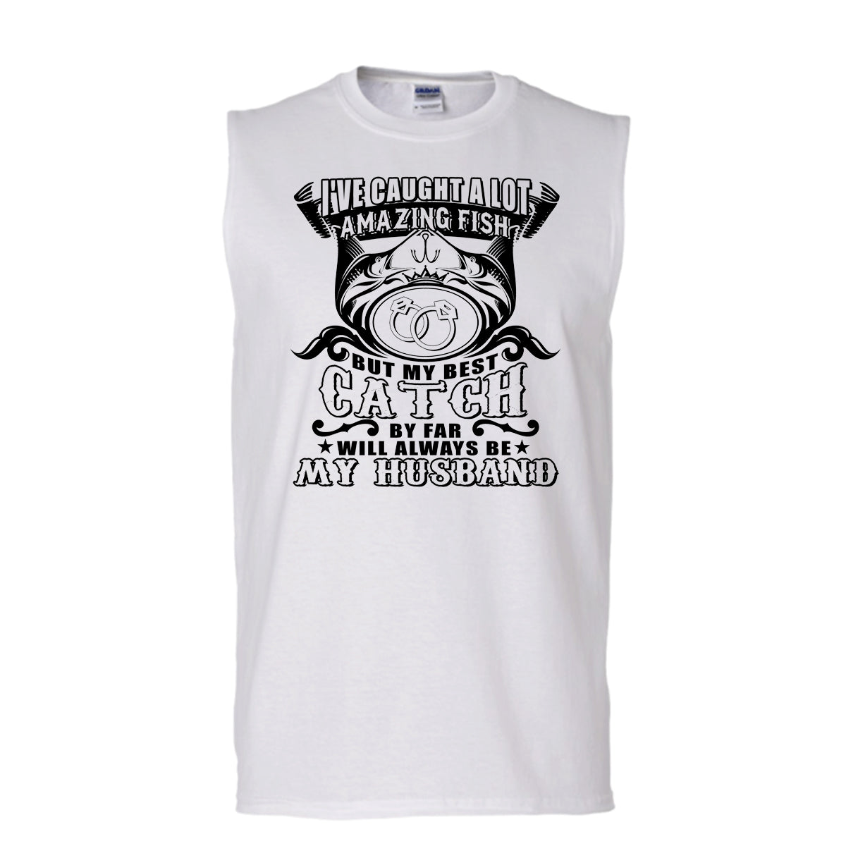 Live Caught A Lot Amazing Fish T Shirt, Fishing Husband T Shirt, Awesome t-shirts (Men's Cotton Sleeveless)
