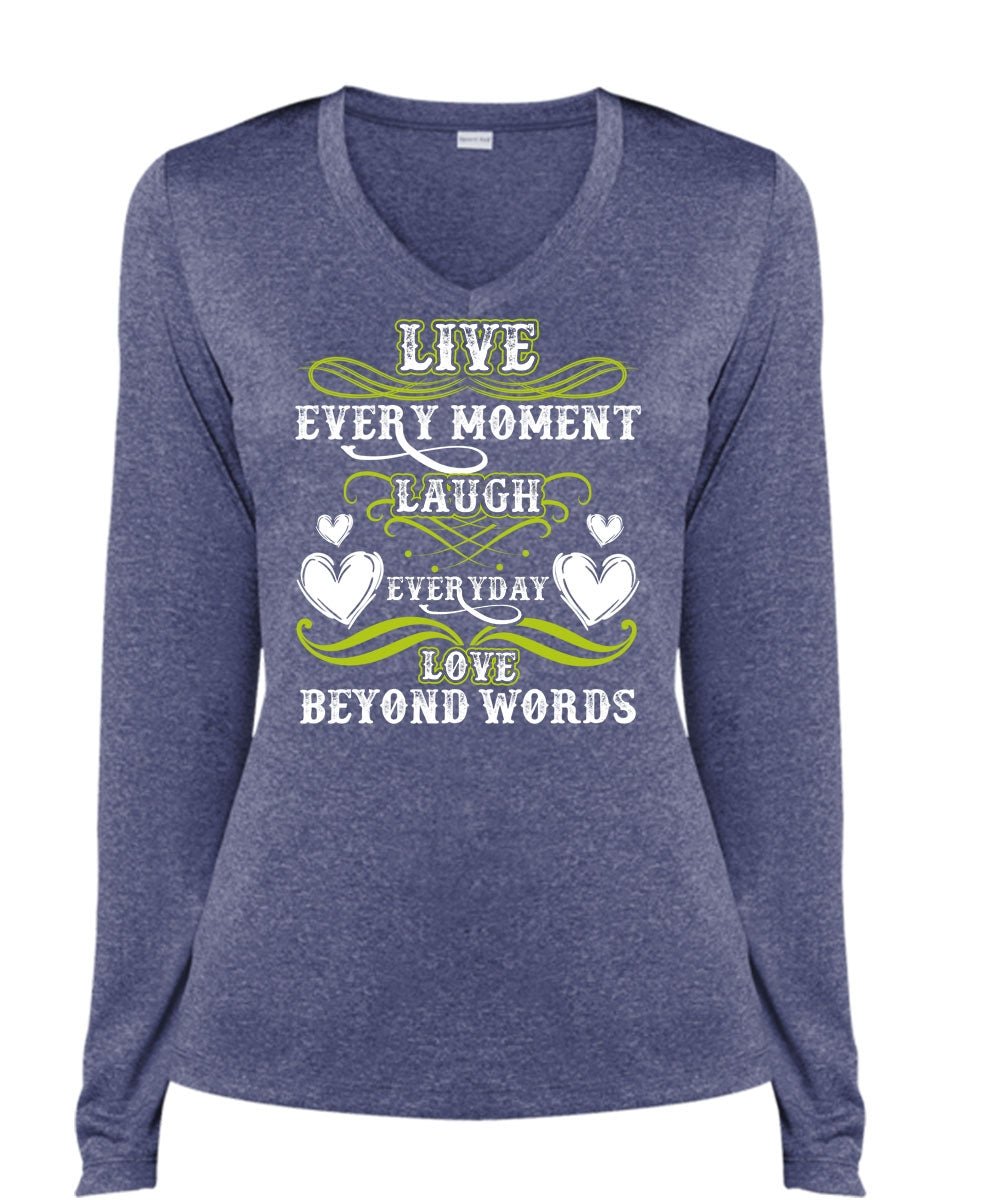 Live Every Moment Laugh T Shirt, Being A Husband T Shirt, Cool Shirt (Ladies LS Heather V-Neck)