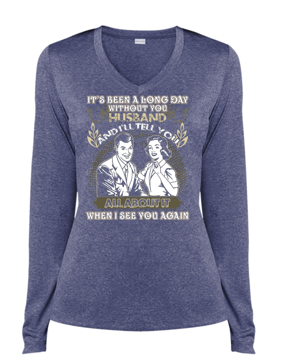 Long Day Without You Husband T Shirt, I See You Again T Shirt, Cool Shirt (Ladies LS Heather V-Neck)