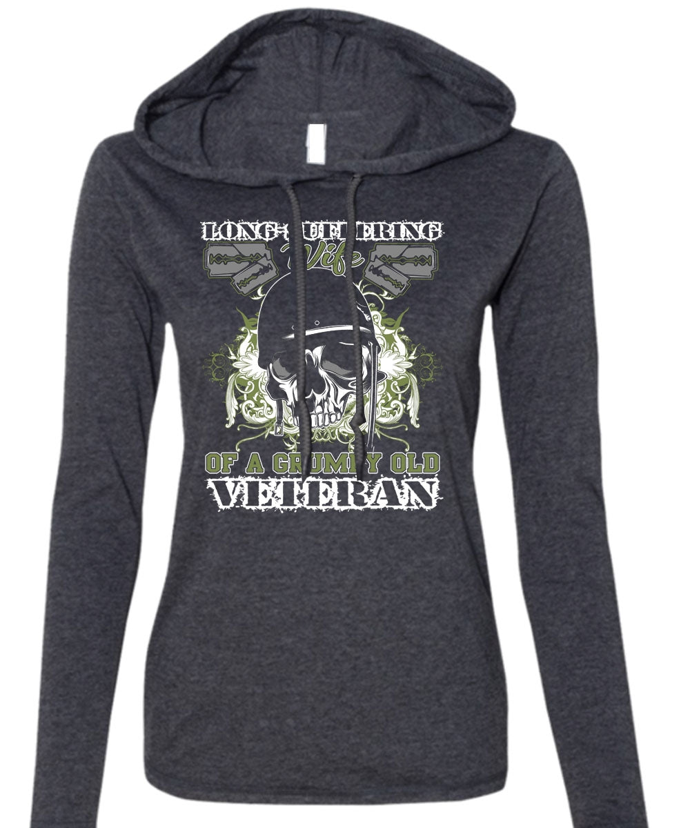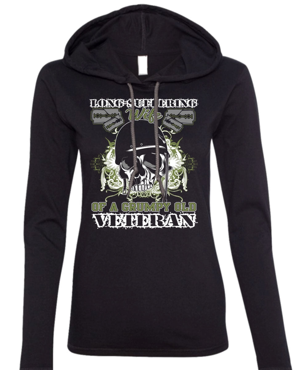 Long Suffering Wife Of A Grumpy Old Veteran T Shirt, Being A Veteran T Shirt (Anvil Ladies Ringspun Hooded)