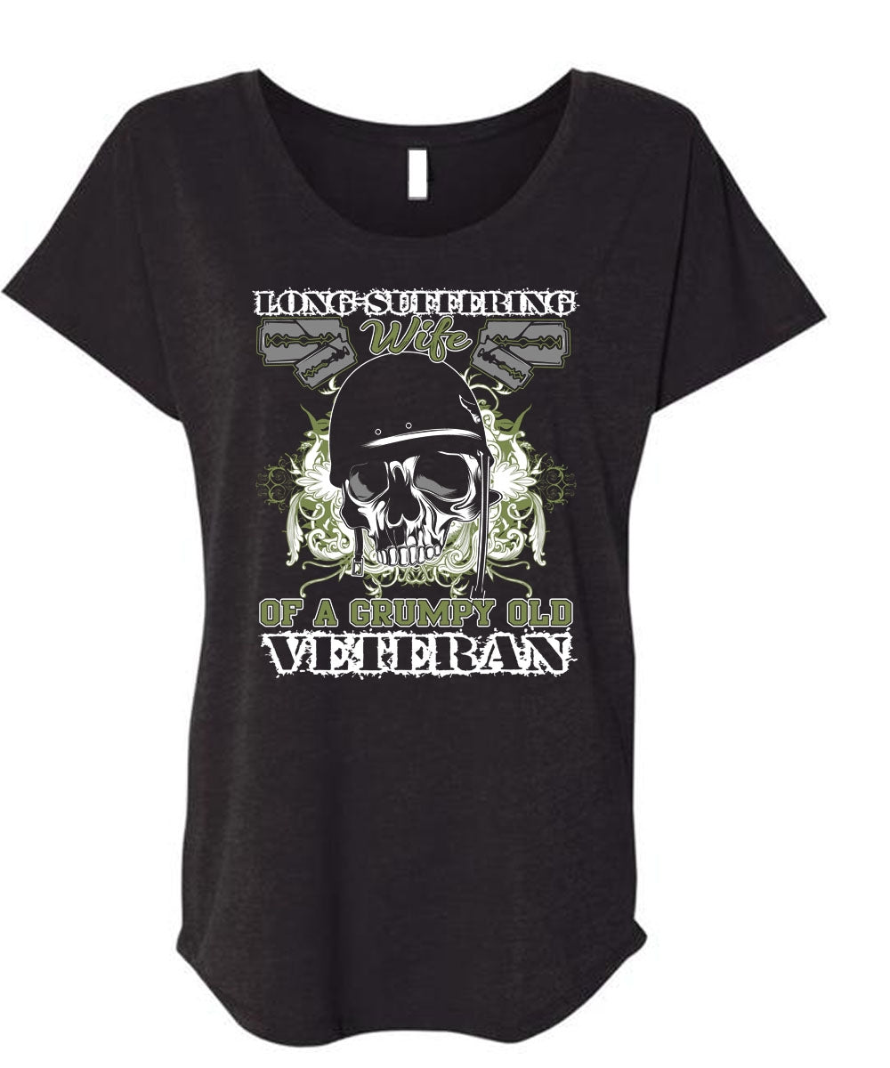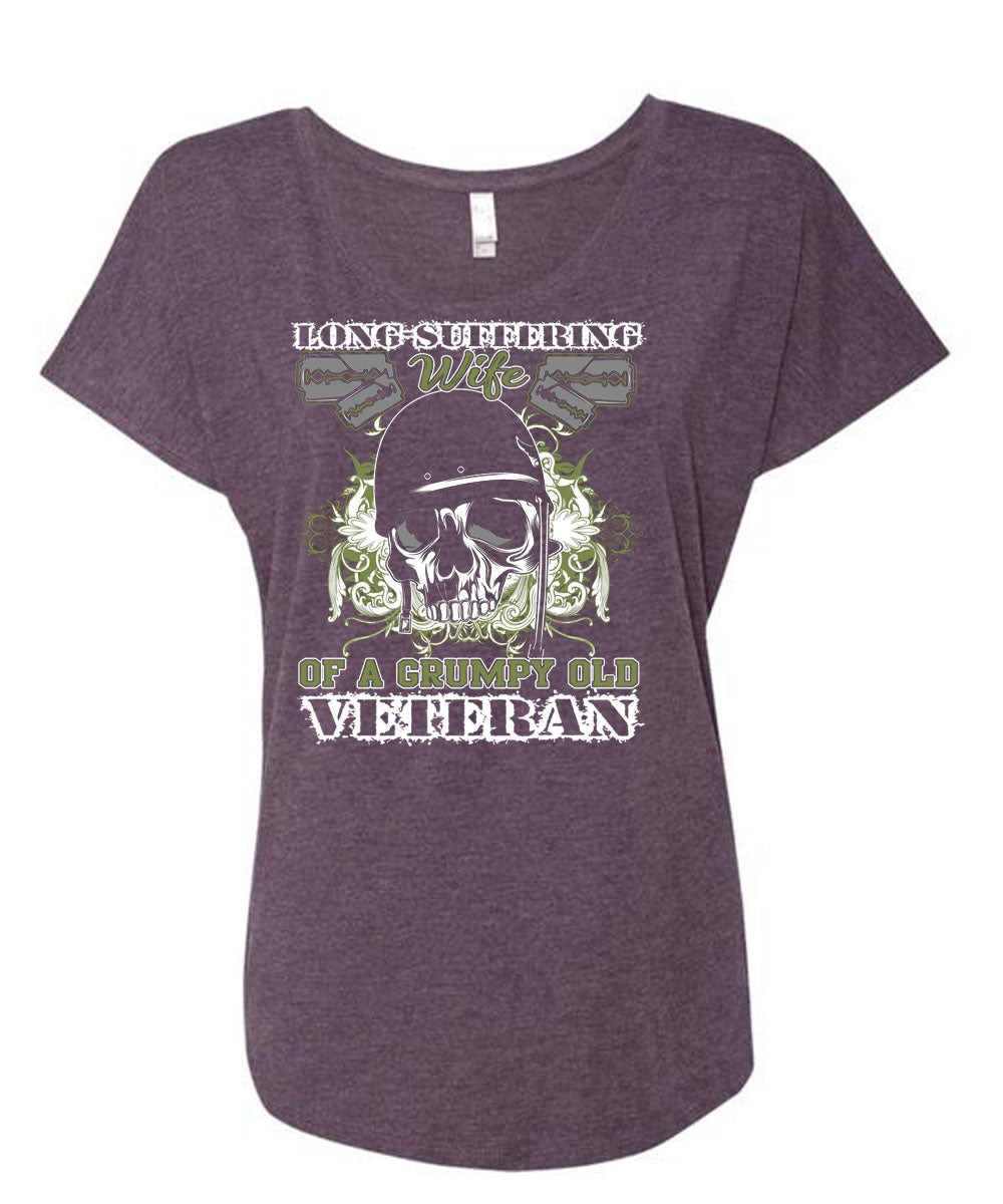 Long Suffering Wife Of A Grumpy Old Veteran T Shirt, Being A Veteran T Shirt, Cool Shirt (Ladies' Triblend Dolman Sleeve)