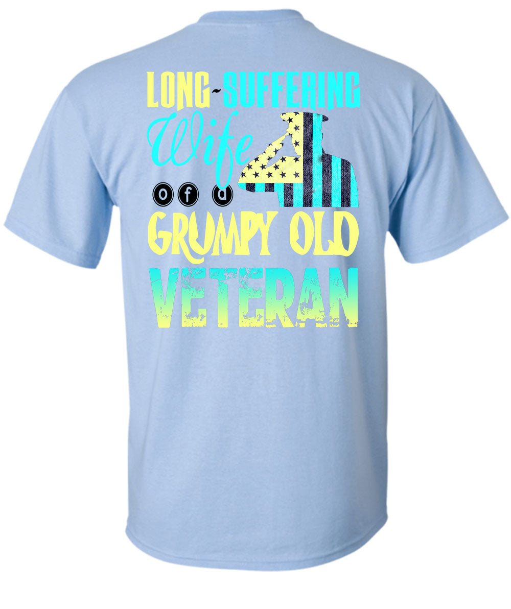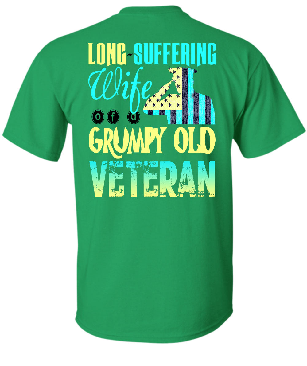 Long Suffering Wife Of A Grumpy Old Veteran T Shirt, Flag American T Shirt