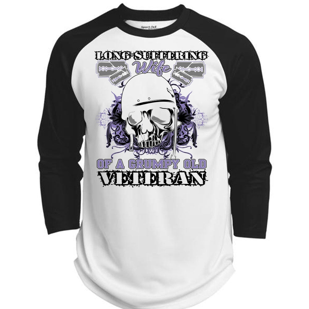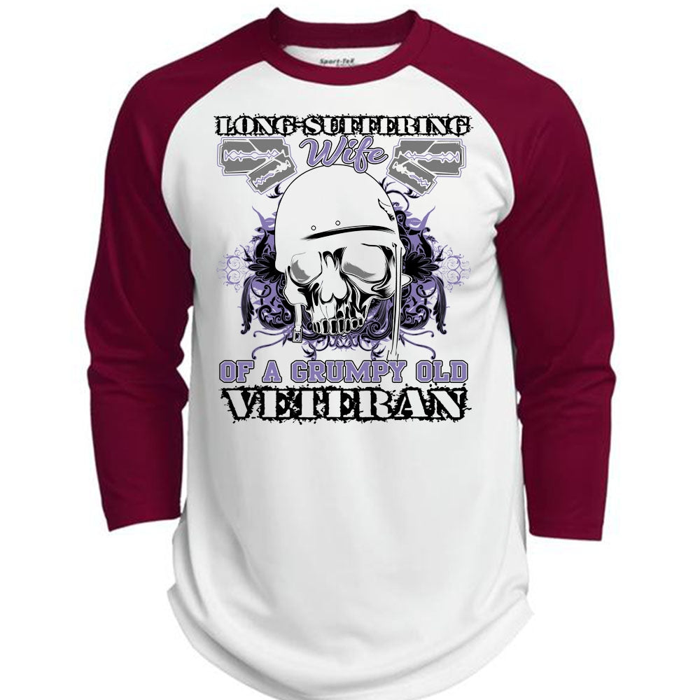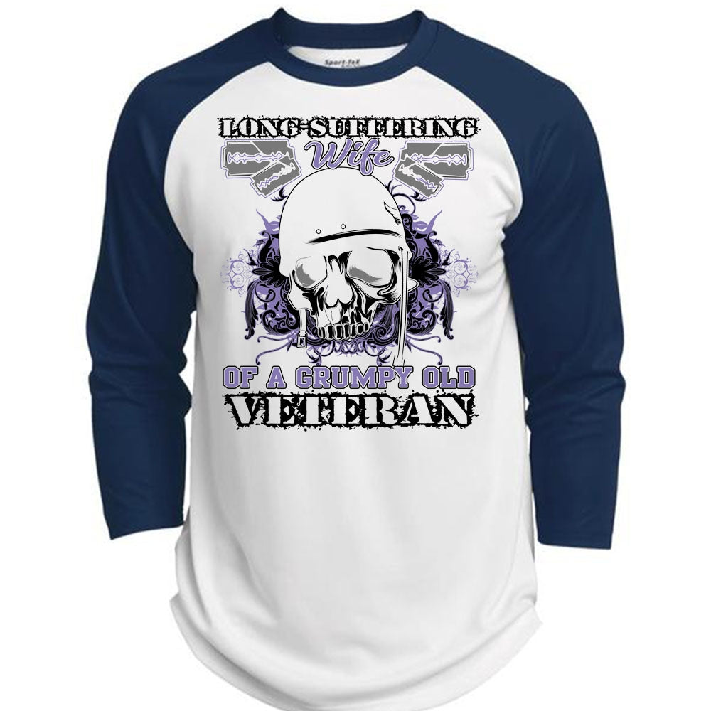 Long Suffering Wife Of A Grumpy Old Veteran T Shirt, I Love Veteran T Shirt, Awesome T-Shirts (Polyester Game Baseball Jersey)