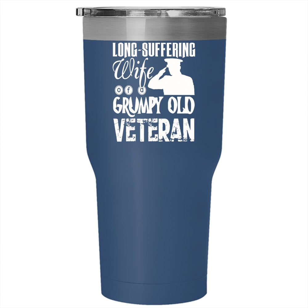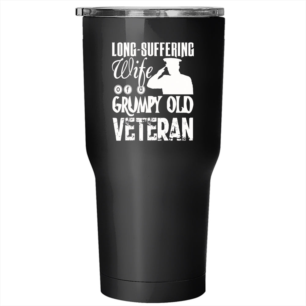 Long Suffering Wife Of A Grumpy Old Veteran Tumbler 30 oz Stainless Steel, Cool Mom Travel Mug