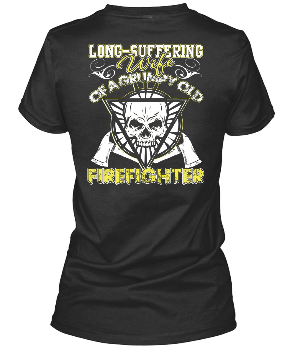 Long - Suffering Wife T Shirt, Grumpy Old Firefighter T Shirt