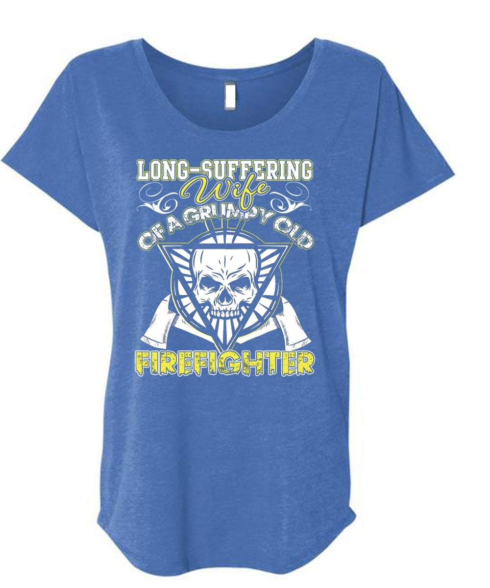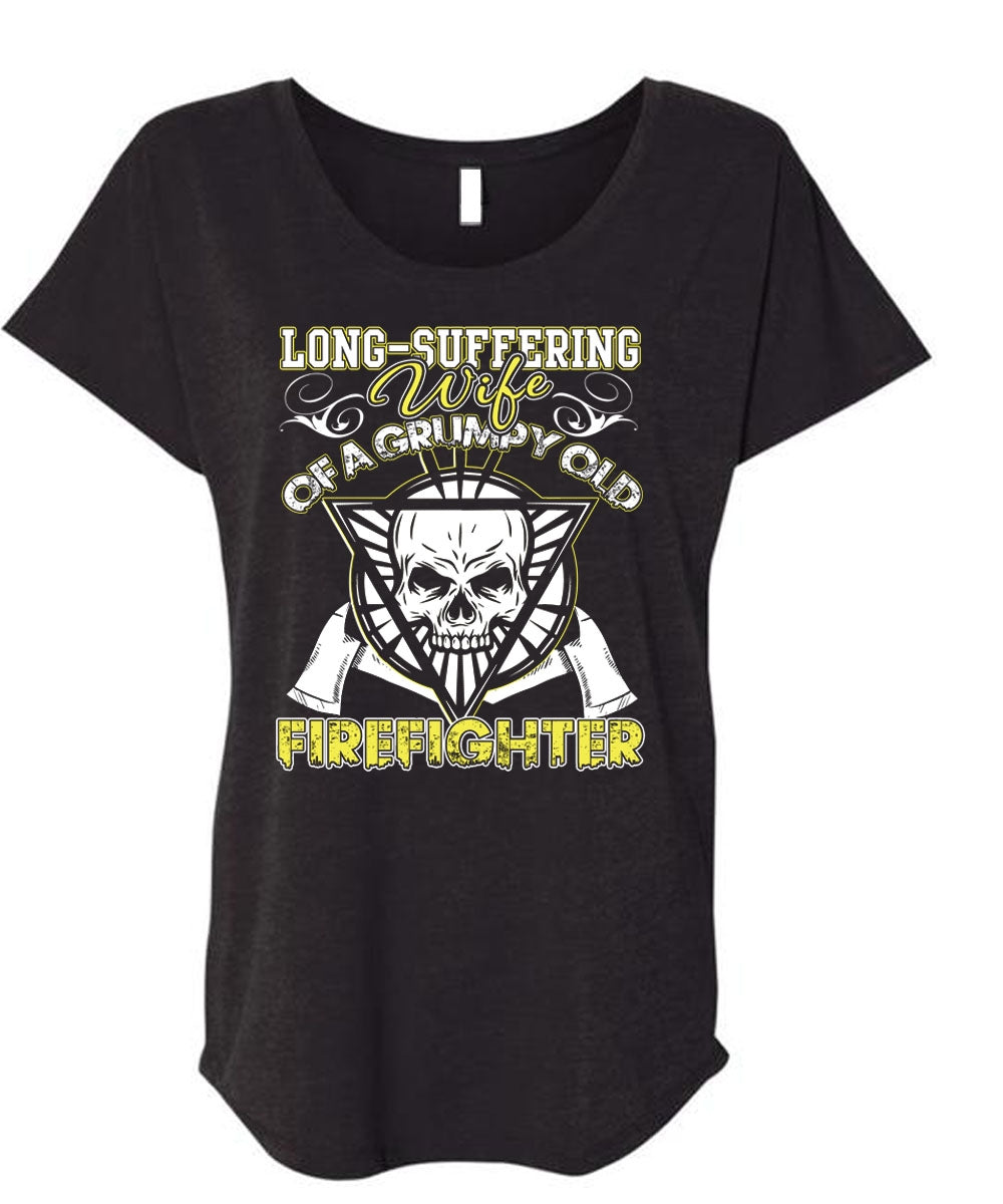 Long - Suffering Wife T Shirt, Grumpy Old Firefighter T Shirt, Cool Shirt (Ladies' Triblend Dolman Sleeve)