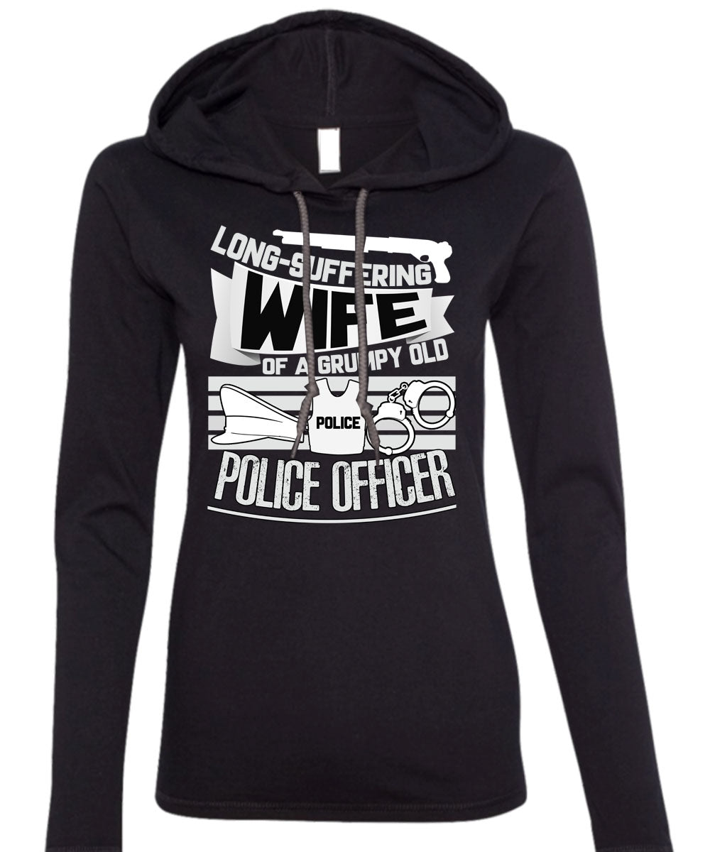 Long-Suffering Wife T Shirt, Grumpy Old Police Officer T Shirt (Anvil Ladies Ringspun Hooded)