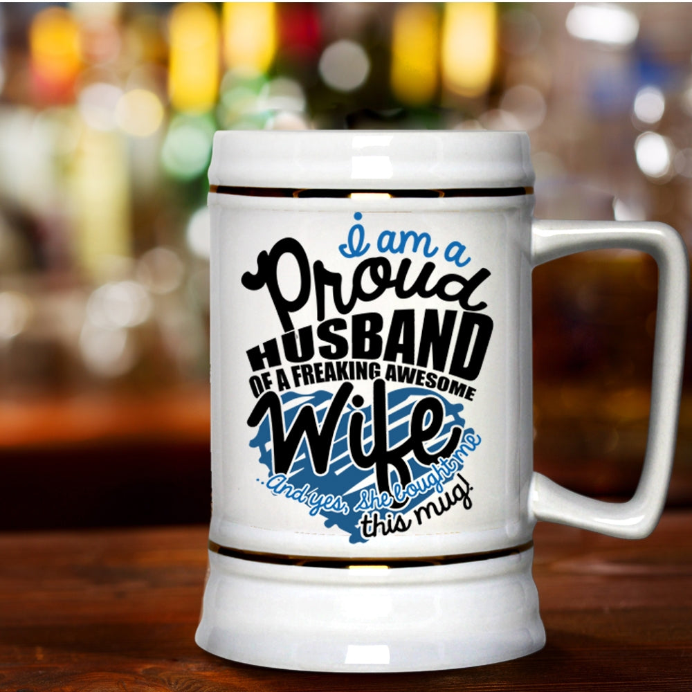 Love Beer Stein 22oz, I Am A Proud Husband Of An Awesome Wife Beer Mug