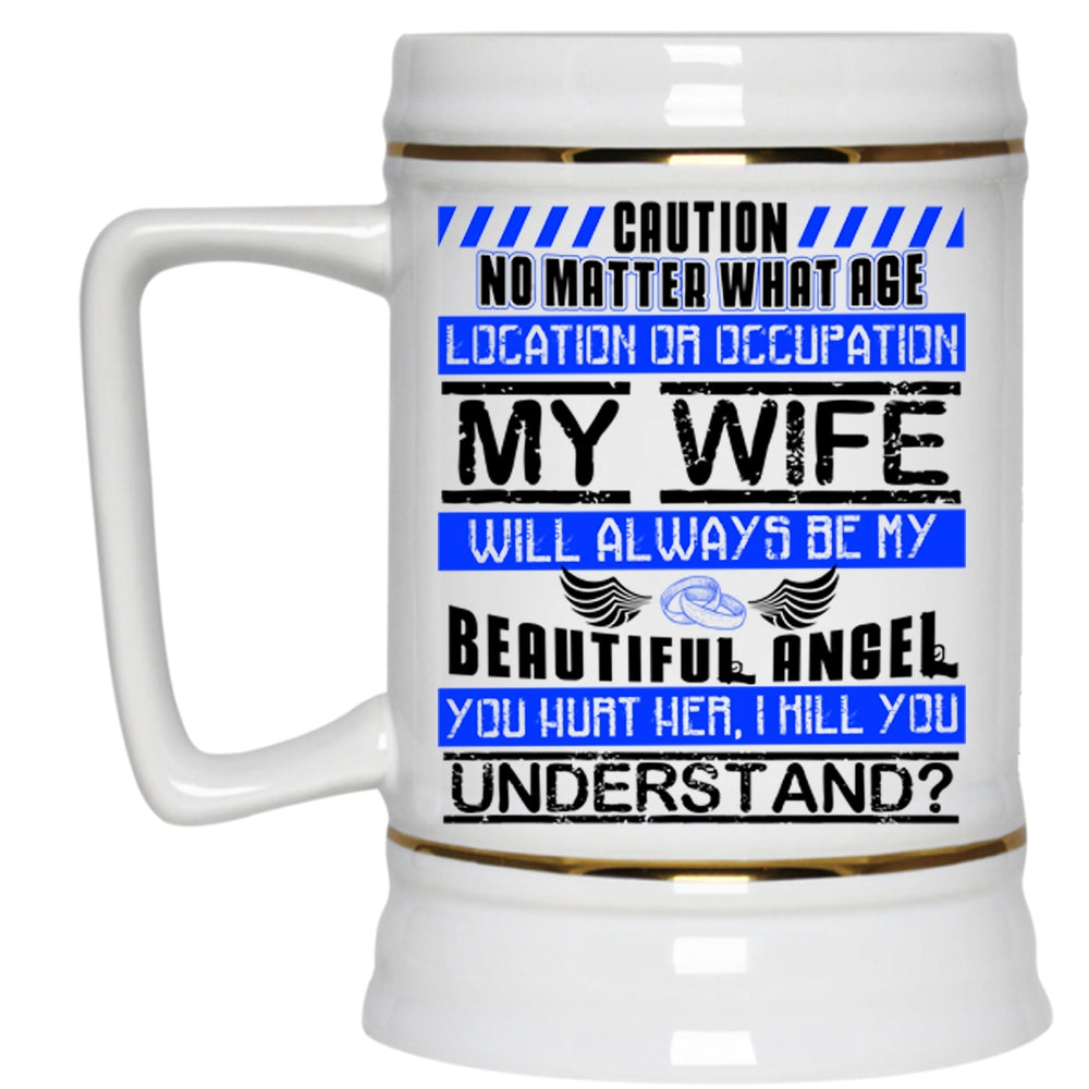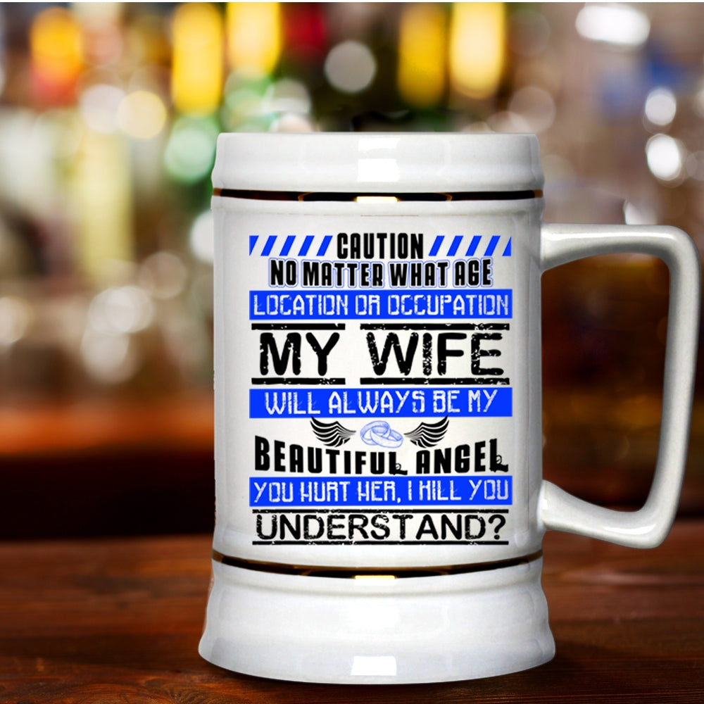 Love Beer Stein 22oz, My Wife Will Always Be My Beautiful Angel Beer Mug