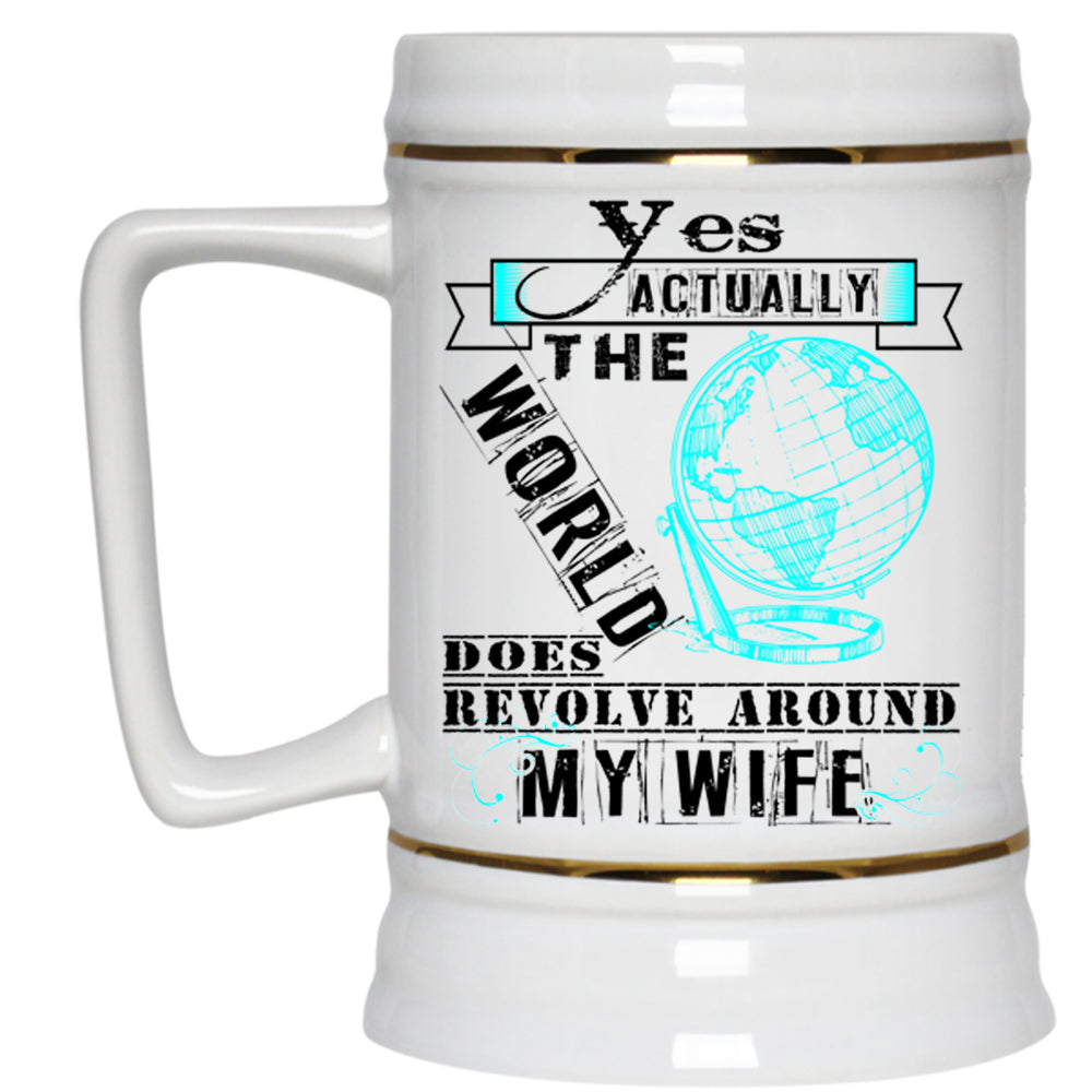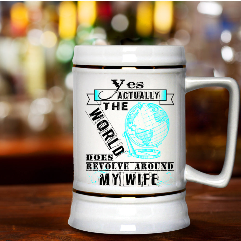 Love Beer Stein 22oz, The World Does Revole Around My Wife Beer Mug
