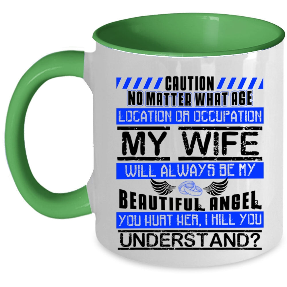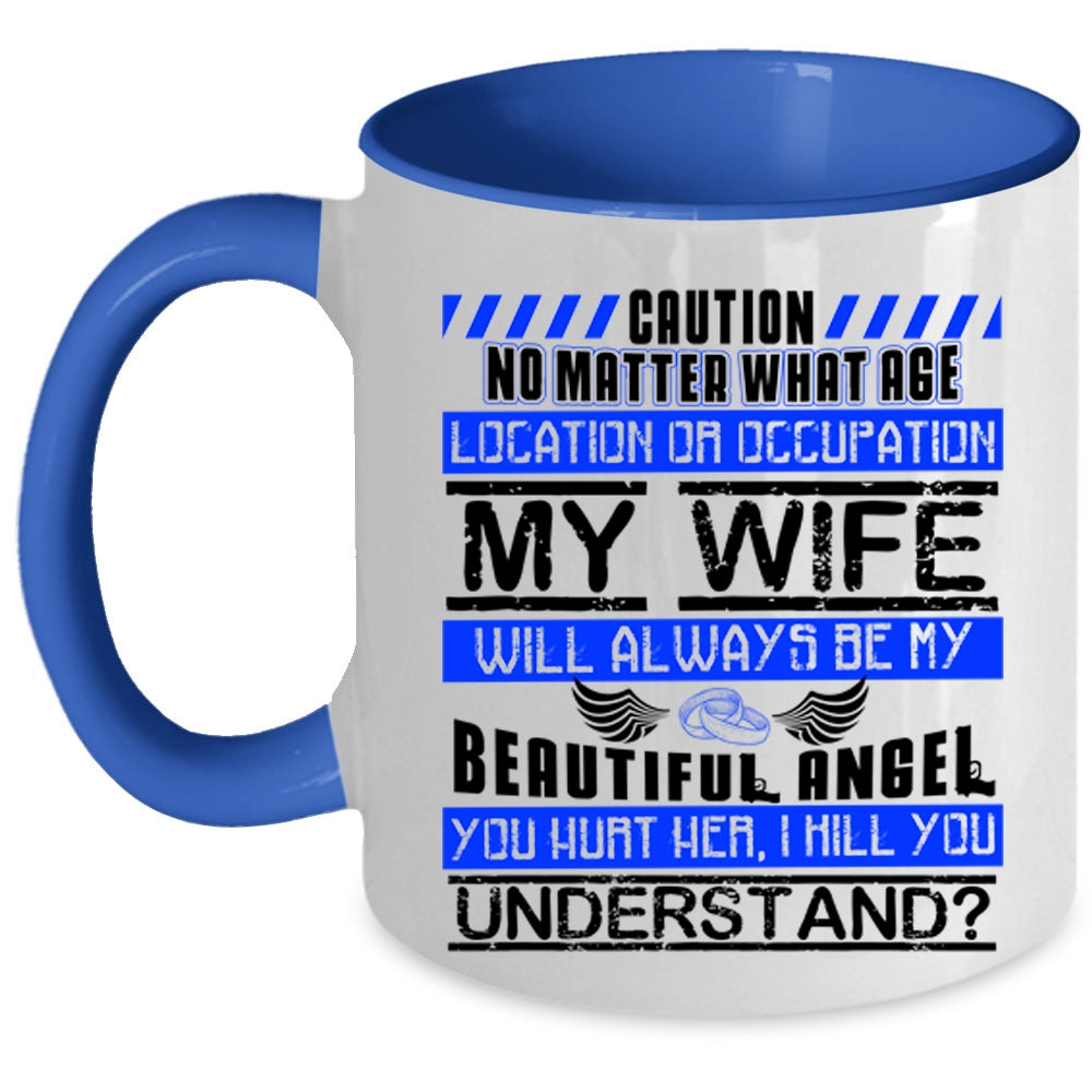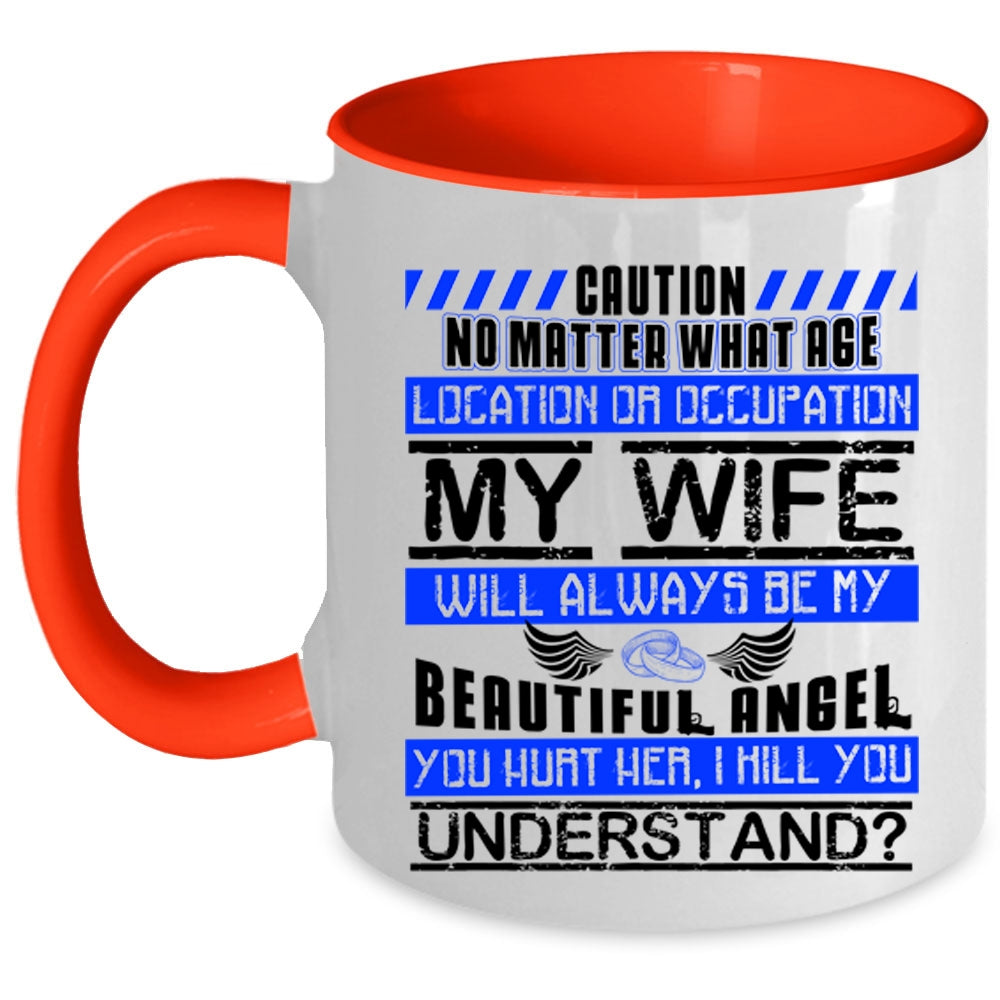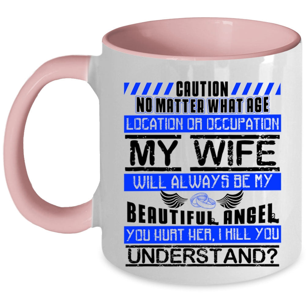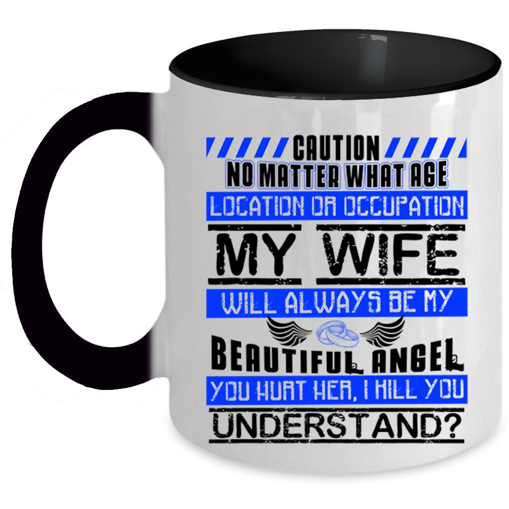 Love Coffee Mug, My Wife Will Always Be My Beautiful Angel Accent Mug