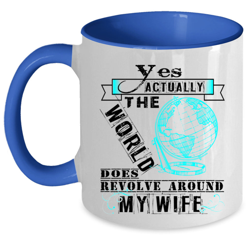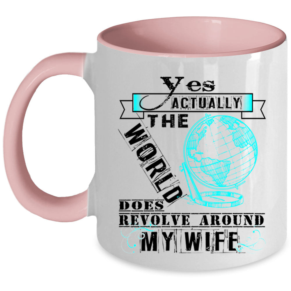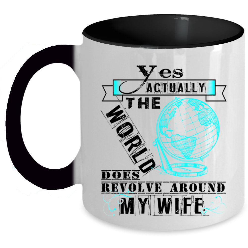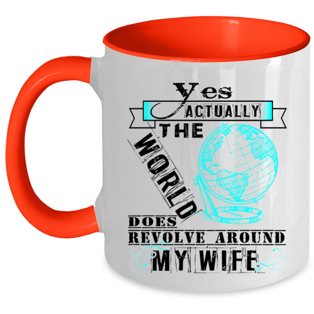 Love Coffee Mug, The World Does Revole Around My Wife Accent Mug