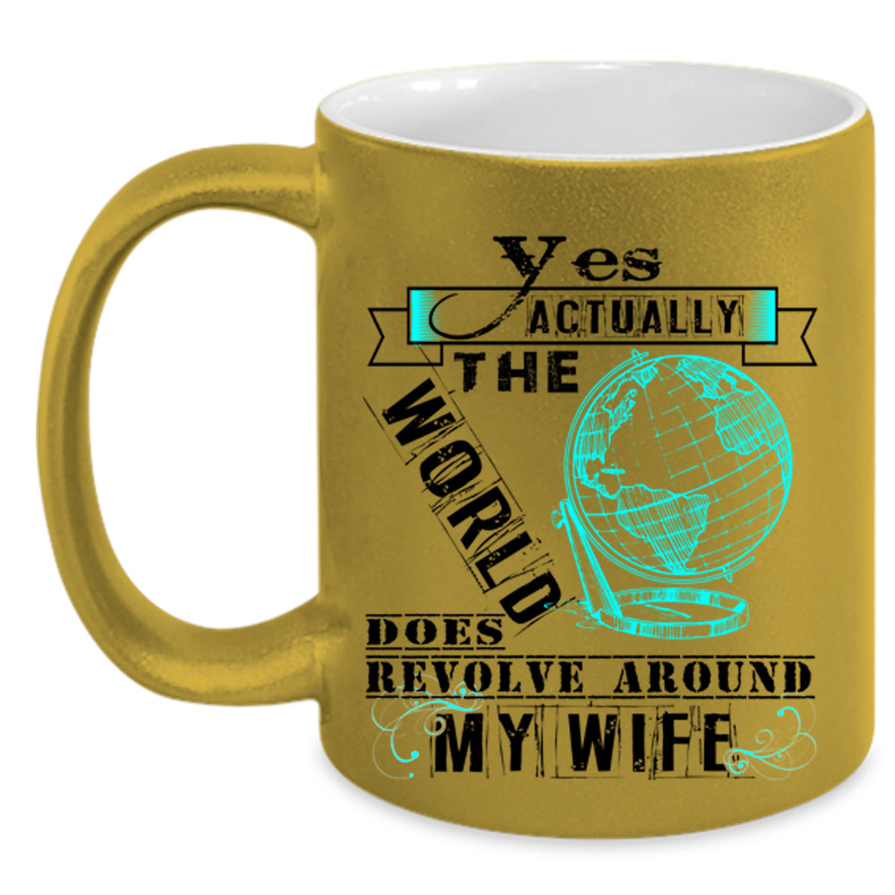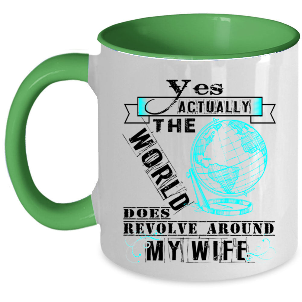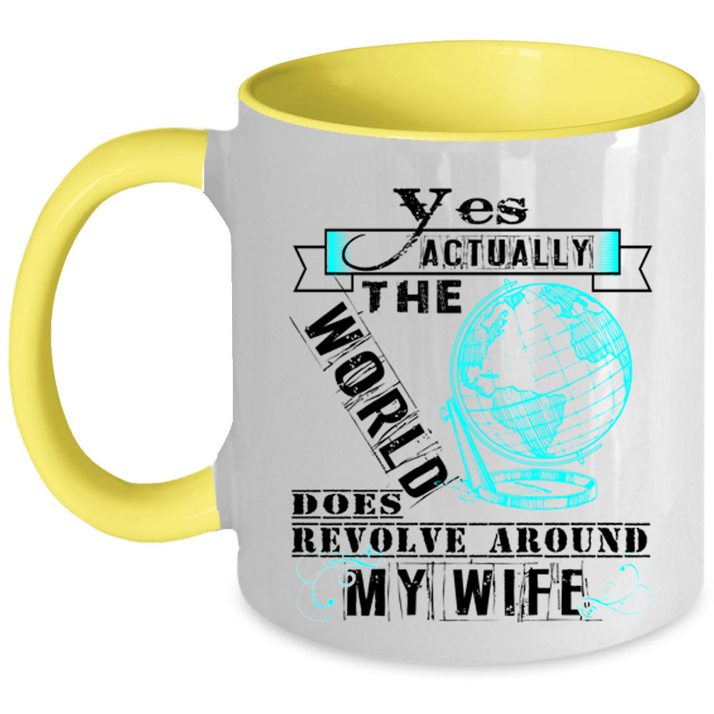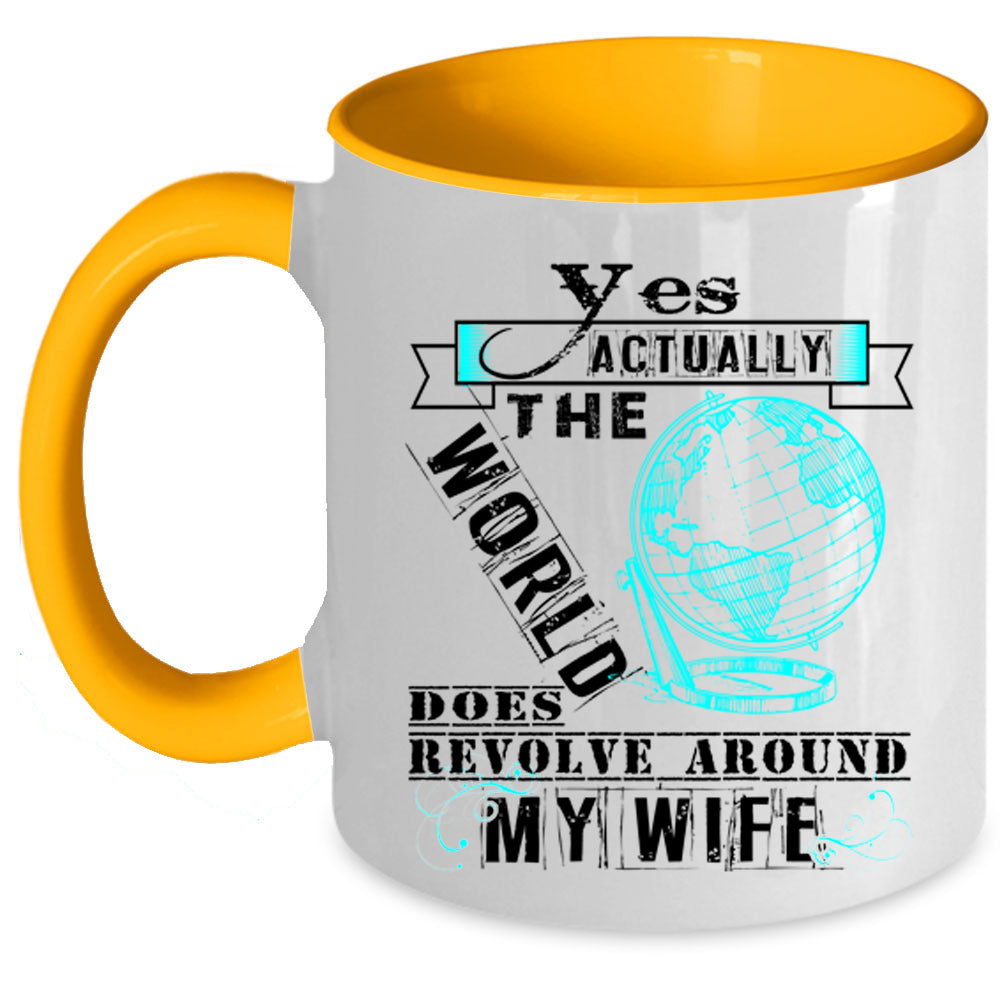 Love Coffee Mug, The World Does Revole Around My Wife Accent Mug