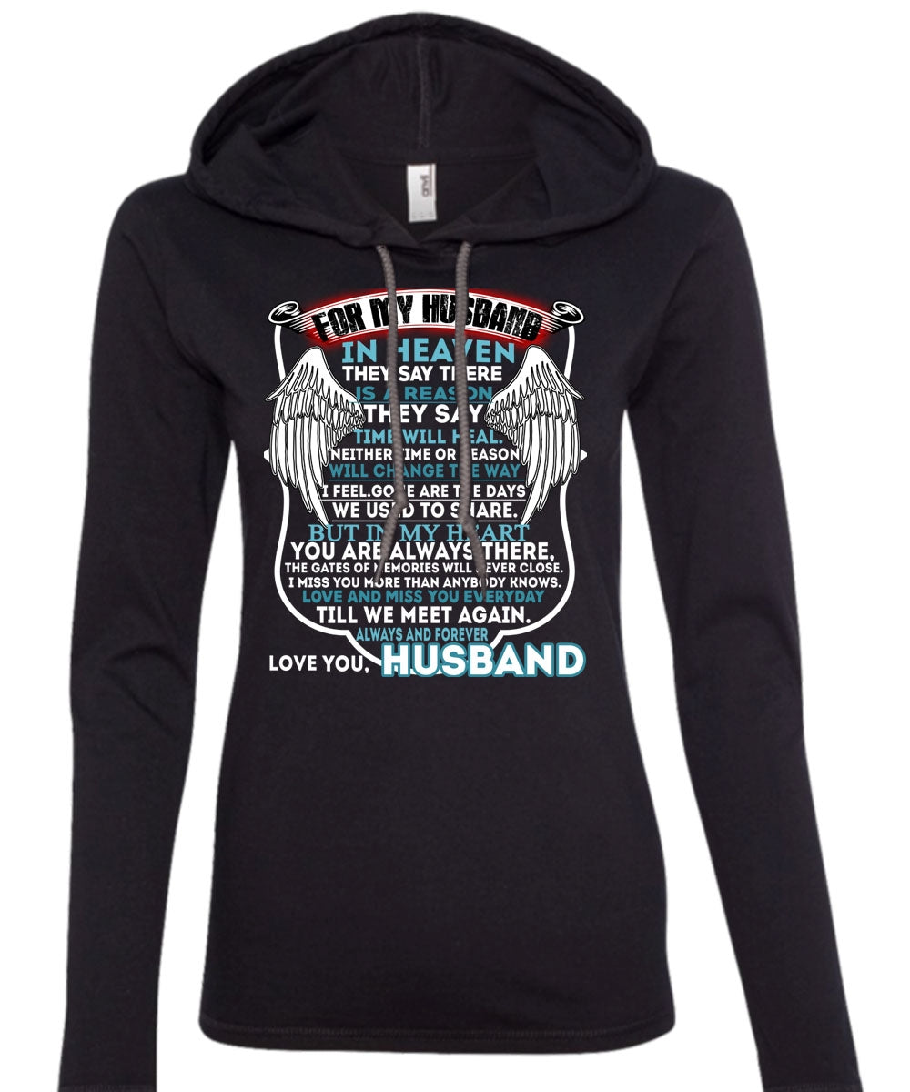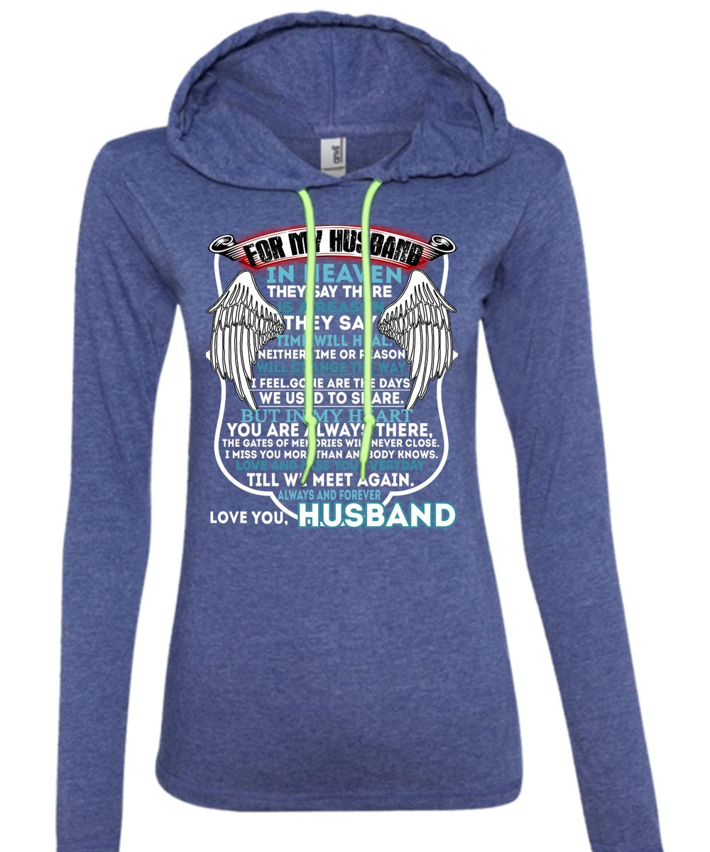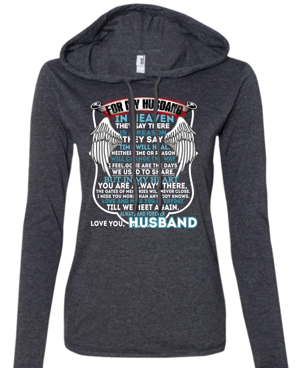 Love You Husband T Shirt, For My Husband In Heaven T Shirt (Anvil Ladies Ringspun Hooded)