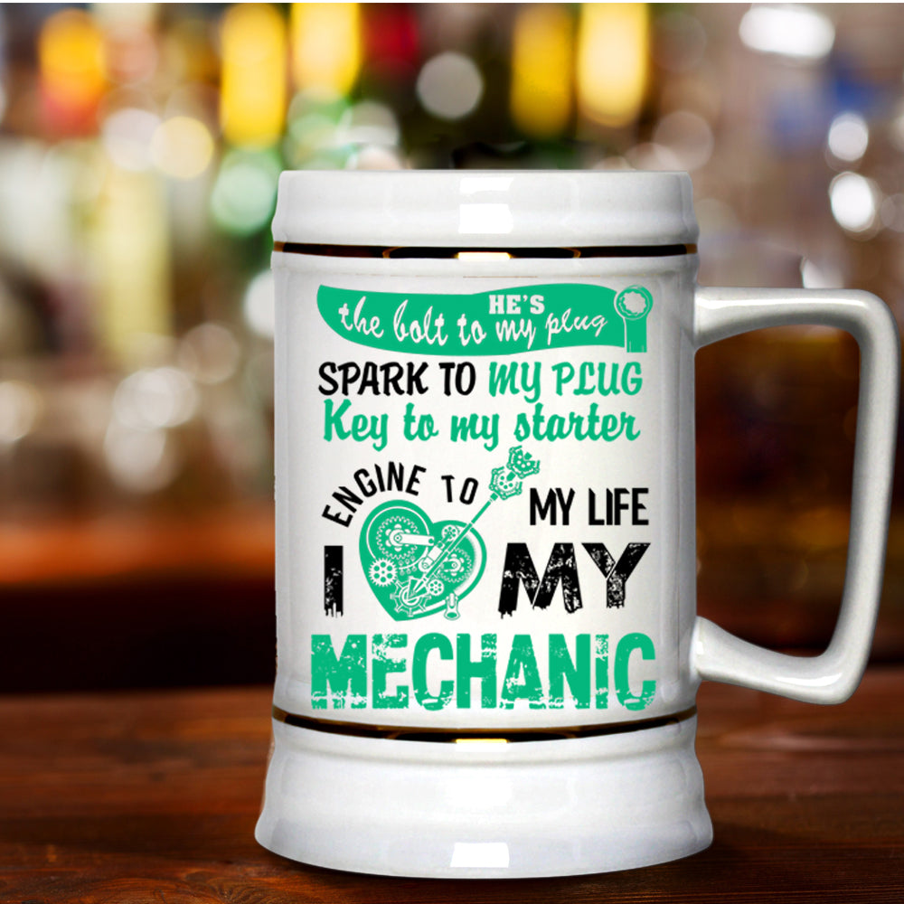 Lovely Gift For My Wife Beer Stein 22oz, I Love My Mechanic Beer Mug