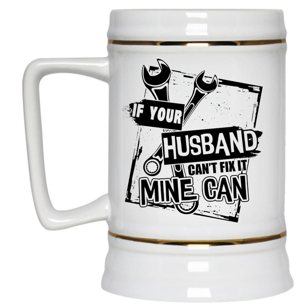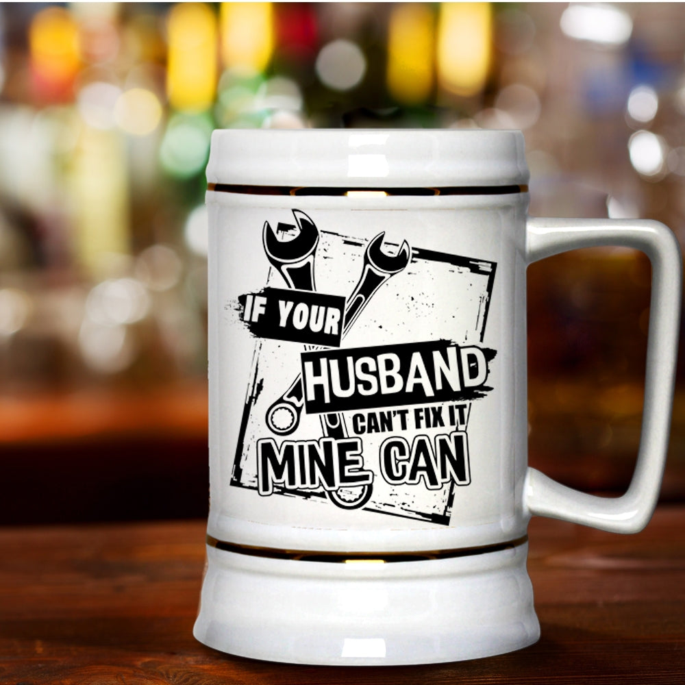 Lovely Wife Beer Stein 22oz, If Your Husband Can't Fix It Mine Can Beer Mug