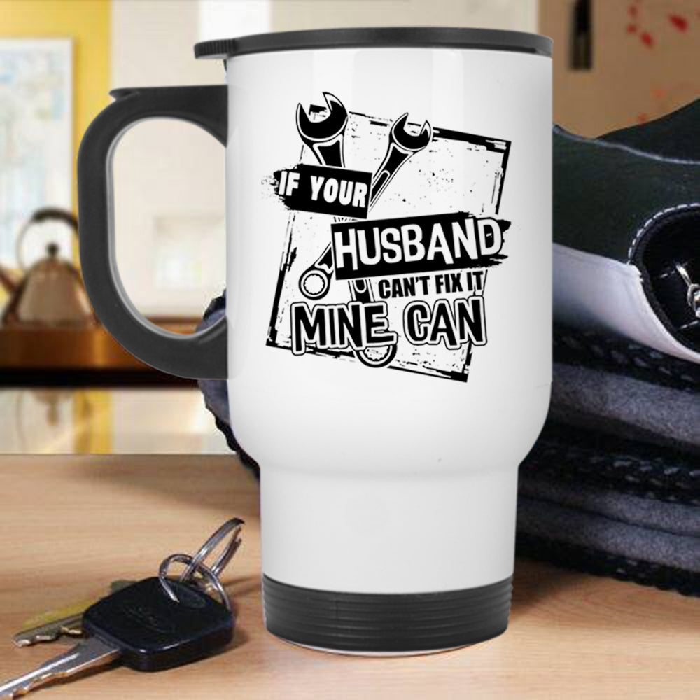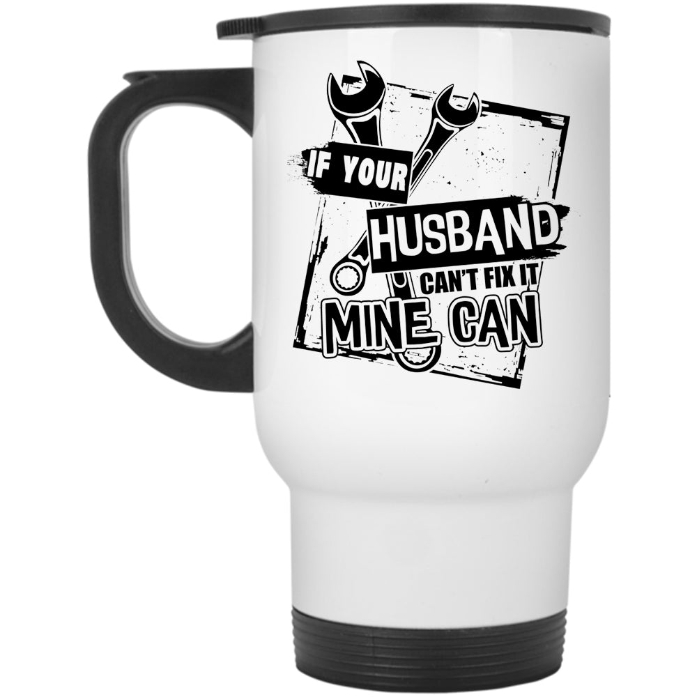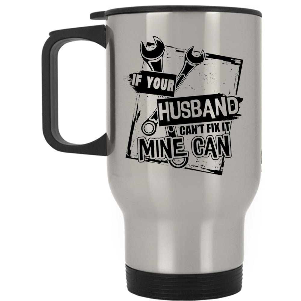 Lovely Wife Travel Mug, If Your Husband Can't Fix It Mine Can Mug