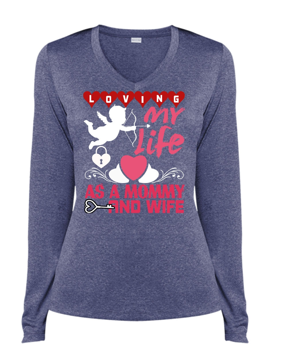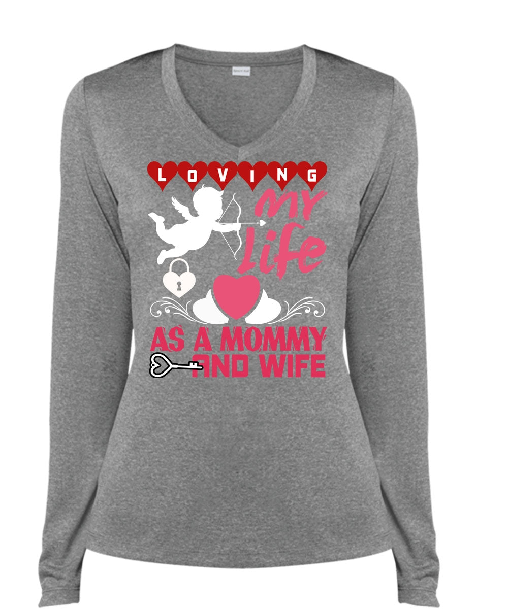 Loving My Life As A Mommy And Wife T Shirt, Being A Mom T Shirt, Cool Shirt (Ladies LS Heather V-Neck)
