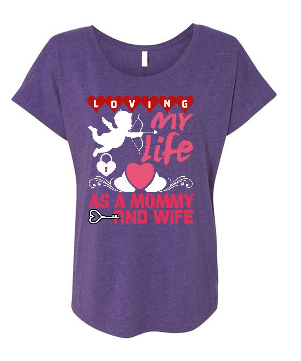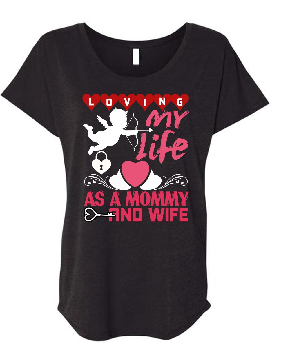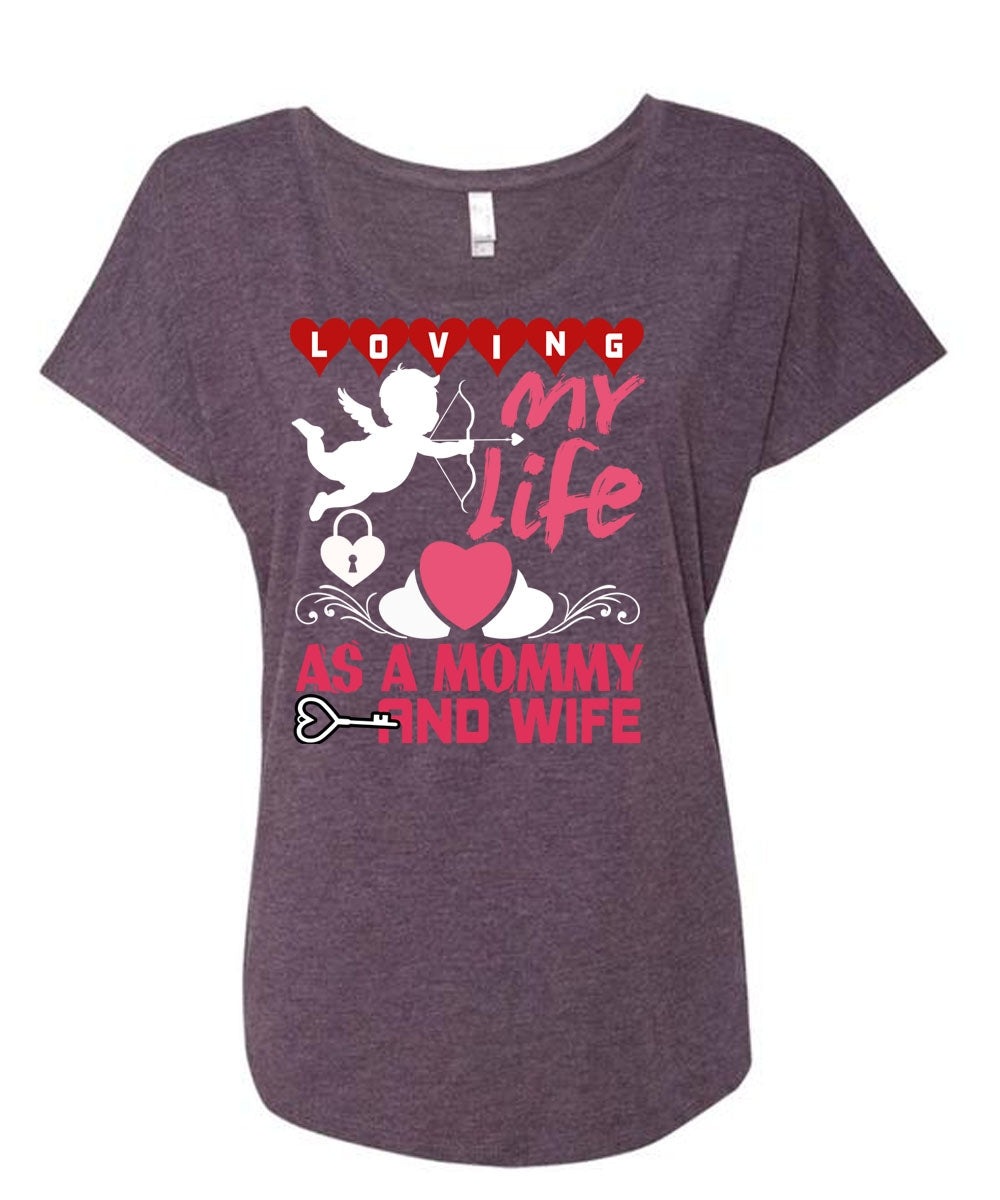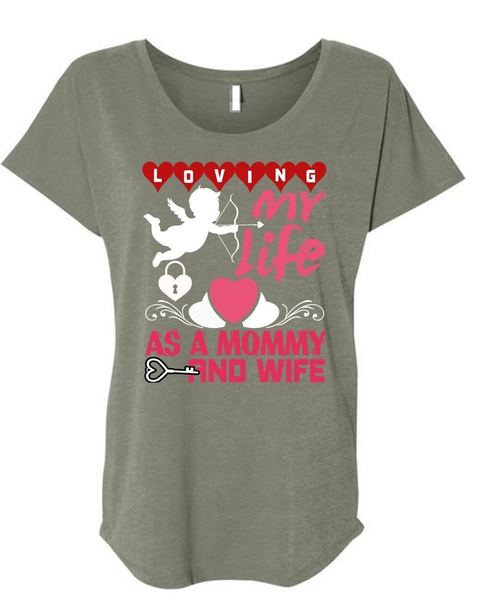 Loving My Life As A Mommy And Wife T Shirt, Being A Mom T Shirt, Cool Shirt (Ladies' Triblend Dolman Sleeve)