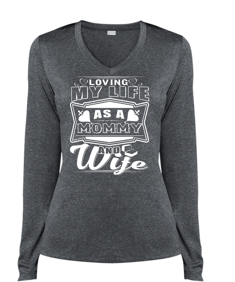 Loving My Life As A Mommy And Wife T Shirt, I Love My Life T Shirt, Cool Shirt (Ladies LS Heather V-Neck)