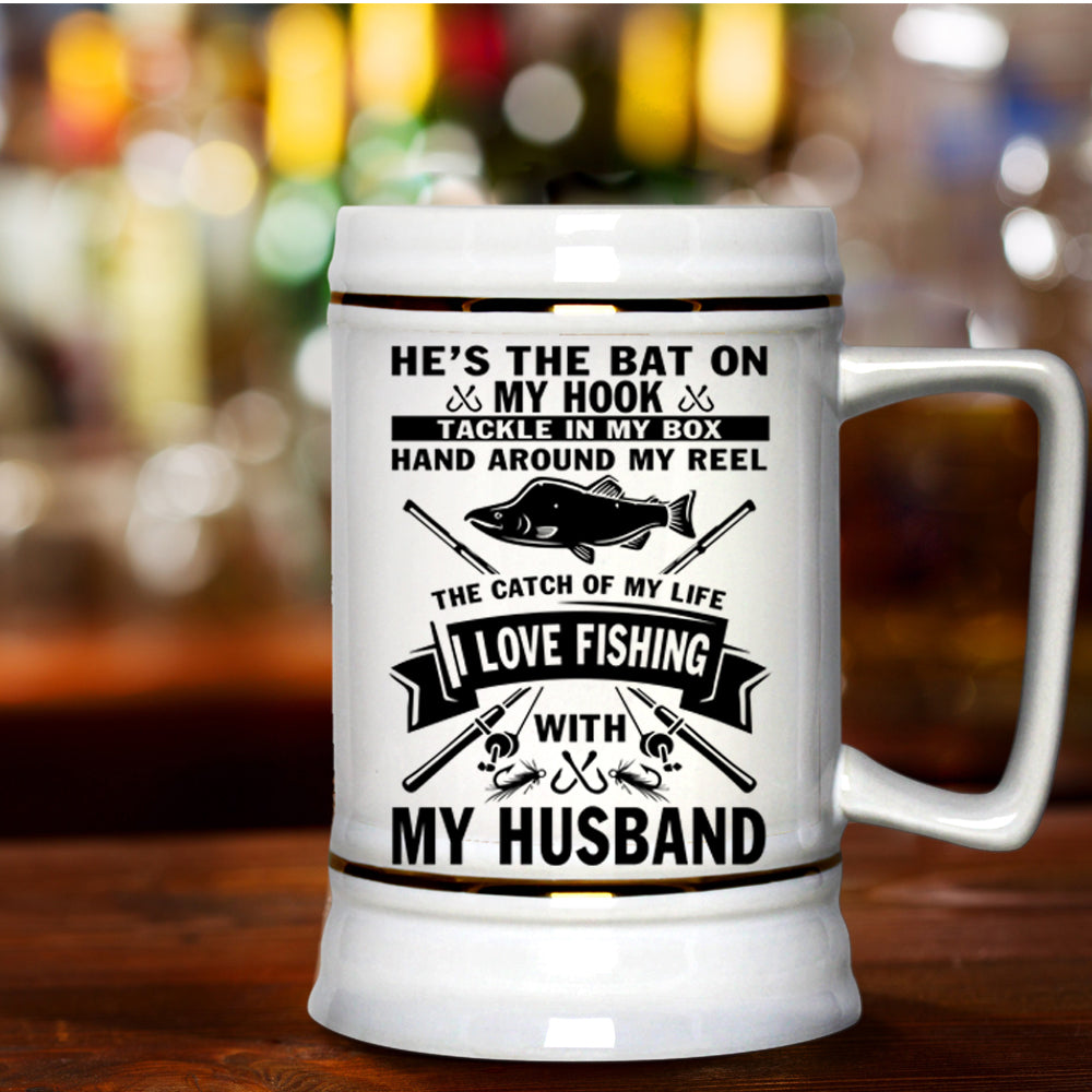 Married Beer Stein 22oz, I Love Fishing With My Husband Beer Mug