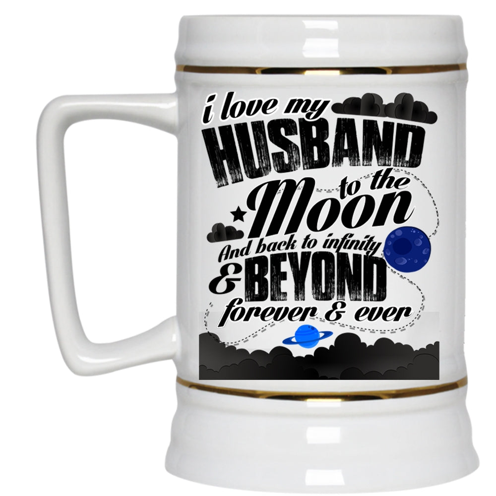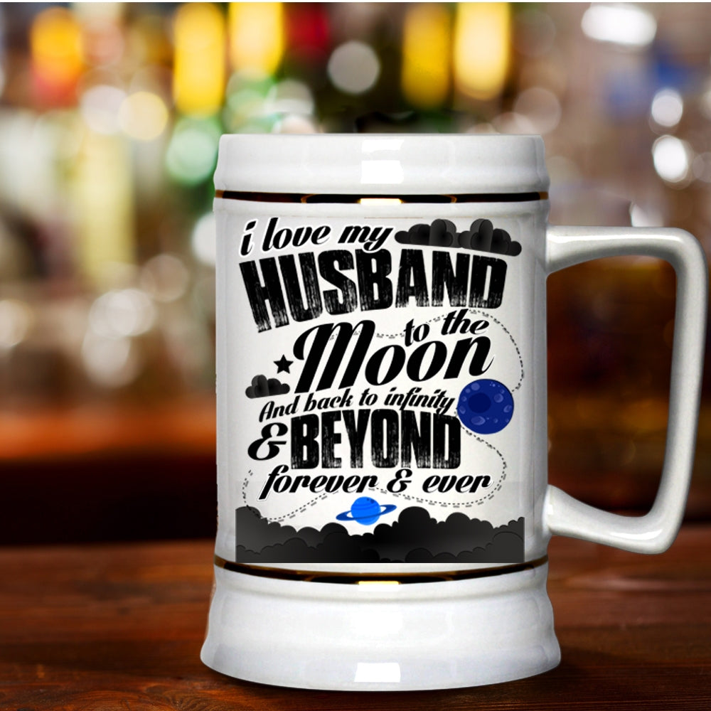 Married Beer Stein 22oz, I Love My Husband To The Moon And Back Beer Mug