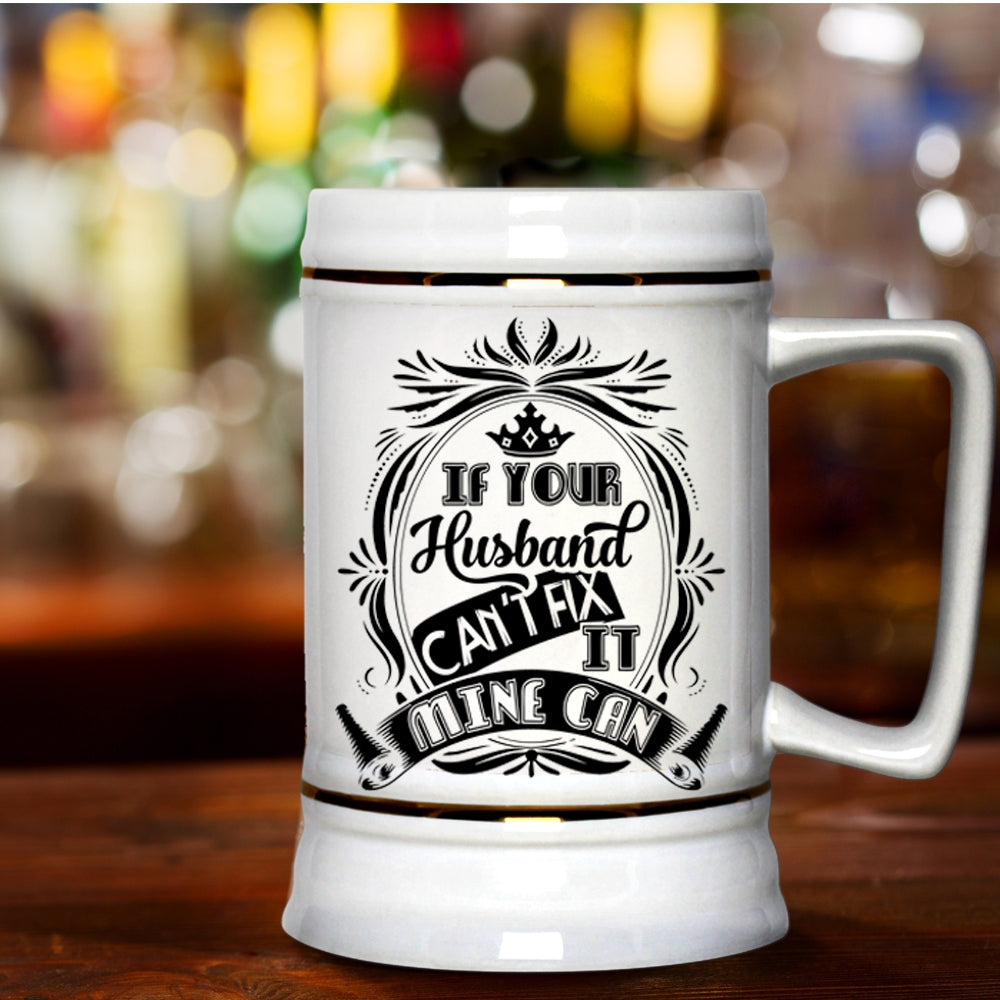 Married Beer Stein 22oz, If Your Husband Can't Fix Mine Can Beer Mug