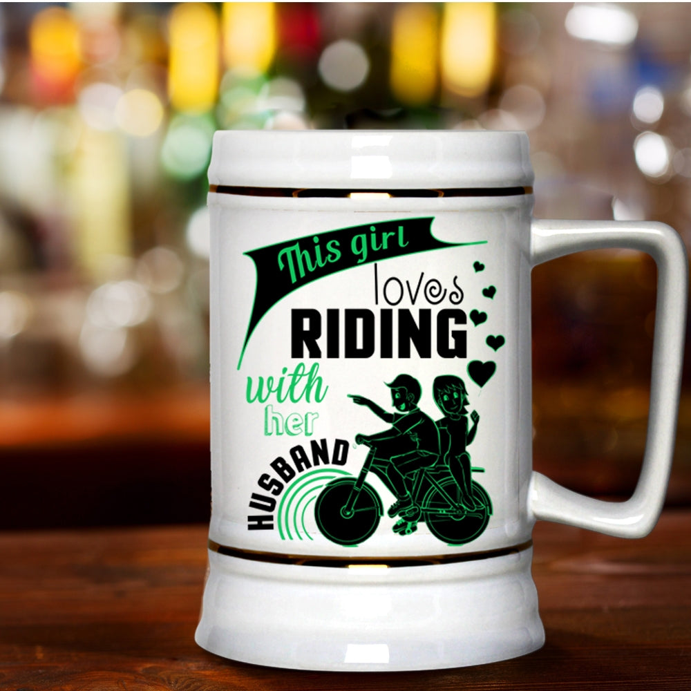 Married Beer Stein 22oz, This Girl Love Riding With Her Husband Beer Mug