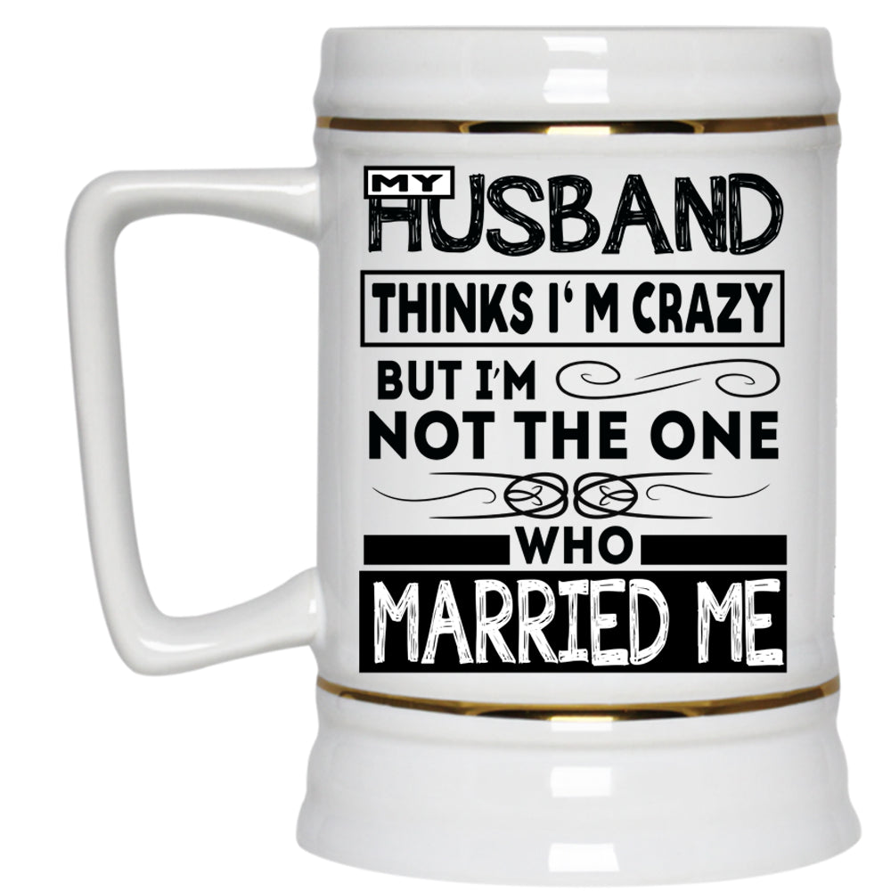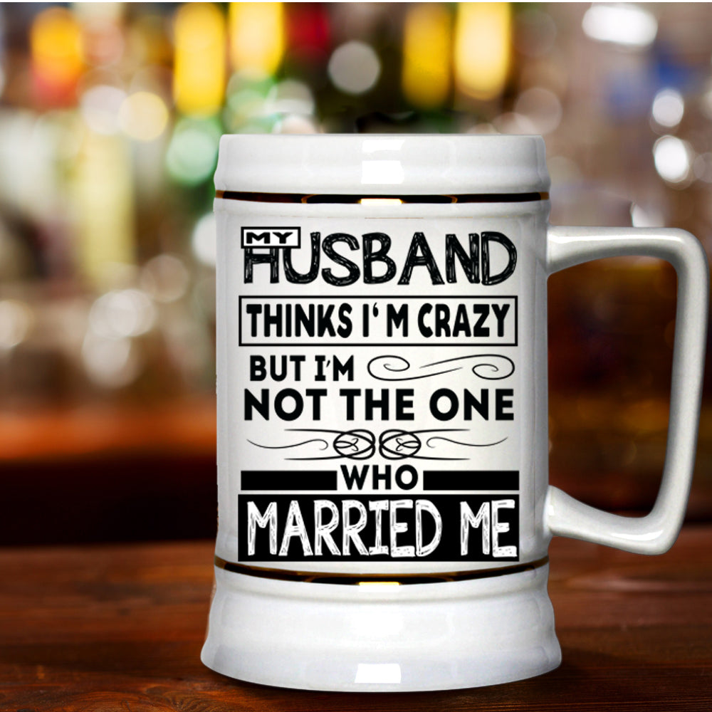 Married Me Beer Stein 22oz, My Husband Thinks I'm Crazy Beer Mug