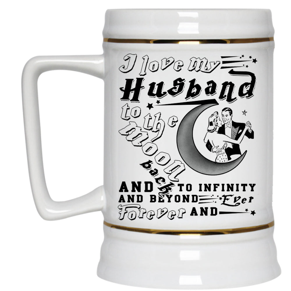 Marry Beer Stein 22oz, I Love My Husband To The Moon And Back Beer Mug
