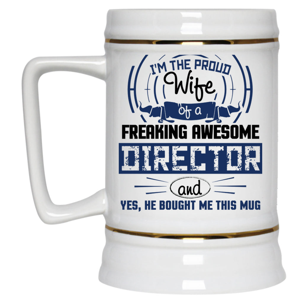 Marry Beer Stein 22oz, Proud Wife Of A Freaking Awesome Director Beer Mug