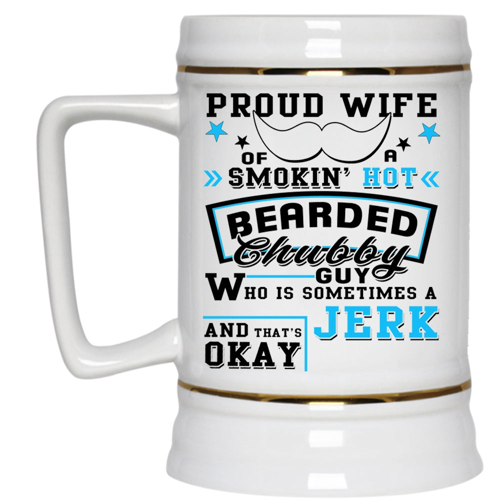 Marry Beer Stein 22oz, Proud Wife Of A Hot Bearded Chubby Guy Beer Mug