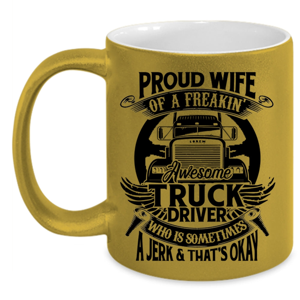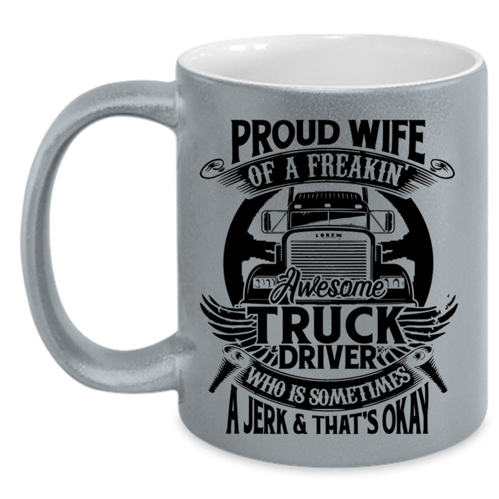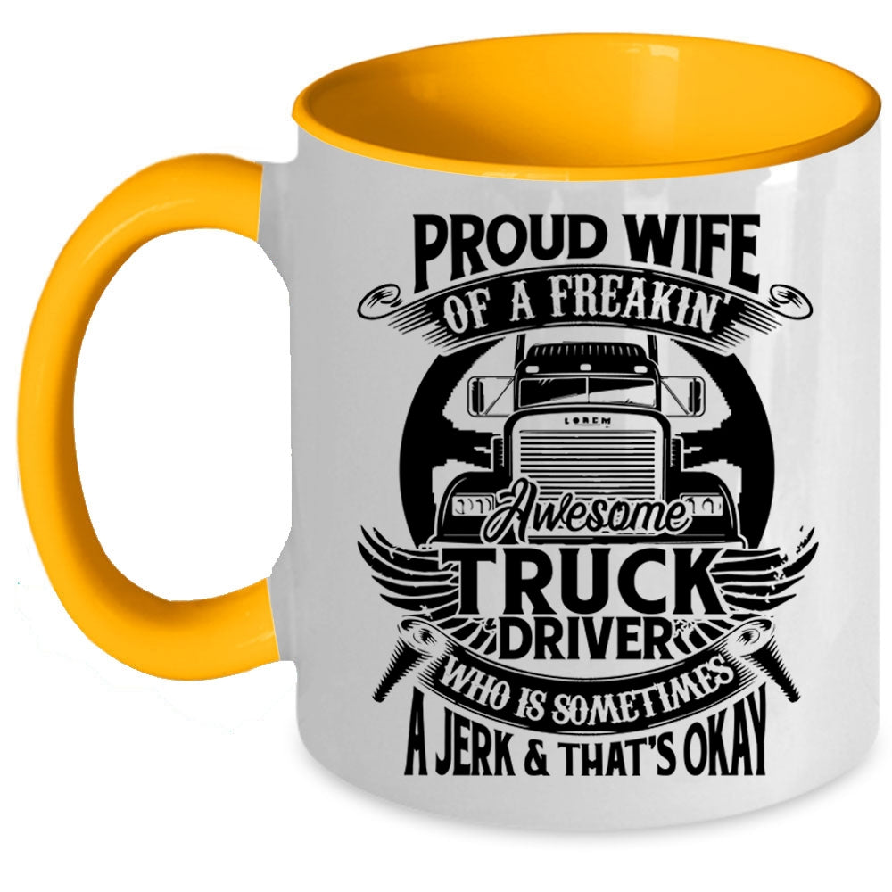 Marry Coffee Mug, Proud Wife Of A Freaking Awesome Truck Driver Accent Mug