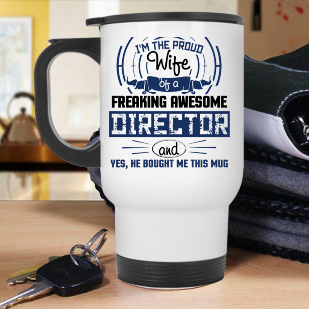 Marry Travel Mug, Proud Wife Of A Freaking Awesome Director Mug