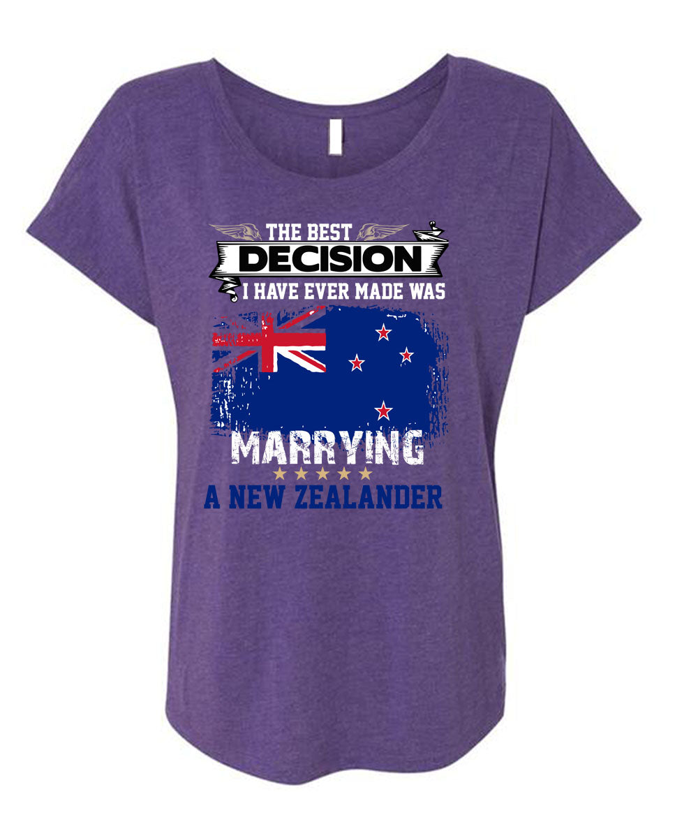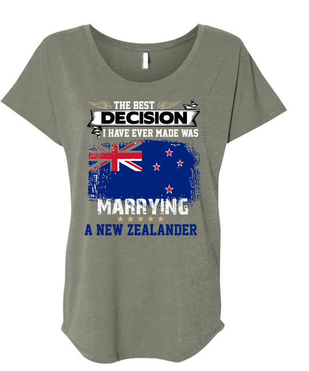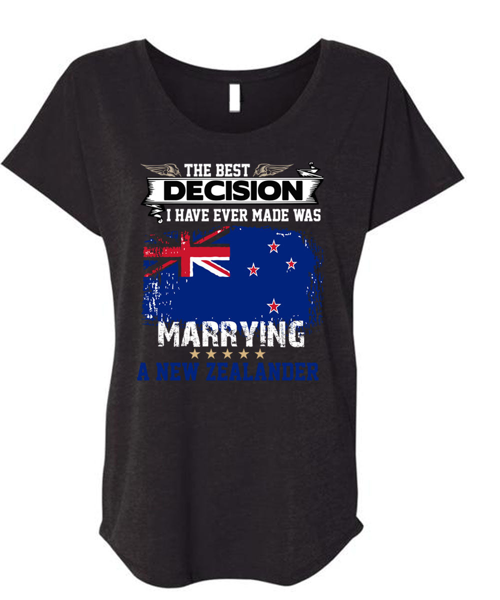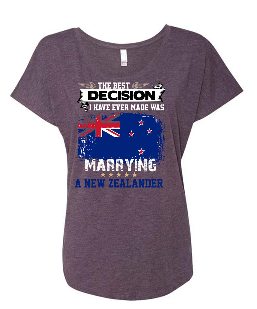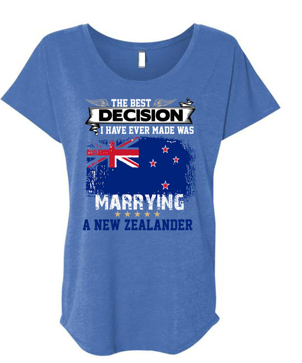 Marrying A New Zealander T Shirt, I Love Husband T Shirt, Cool Shirt (Ladies' Triblend Dolman Sleeve)