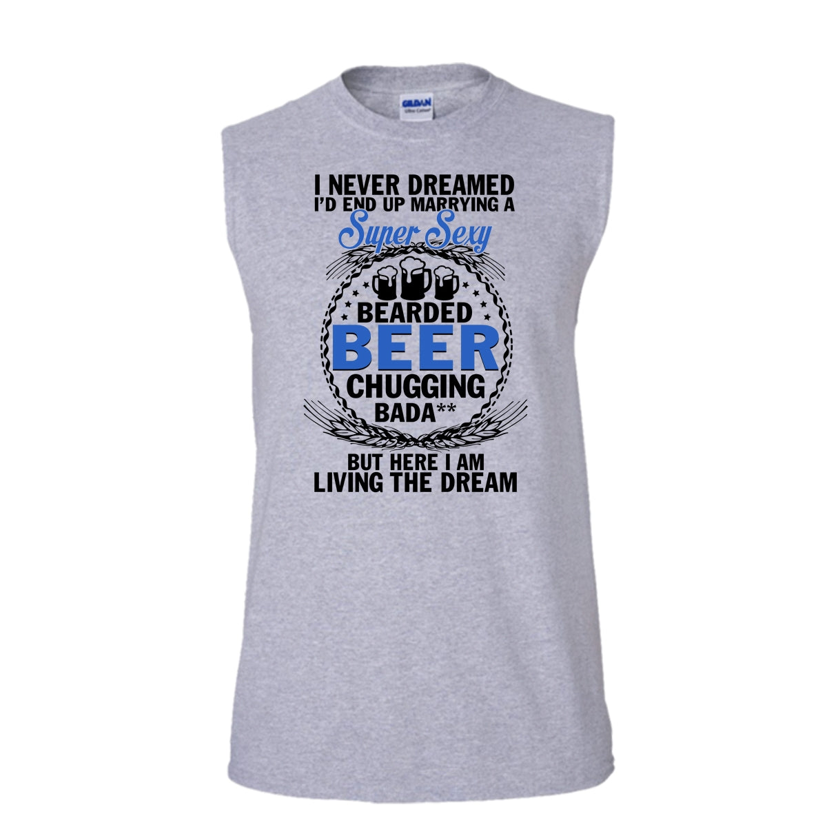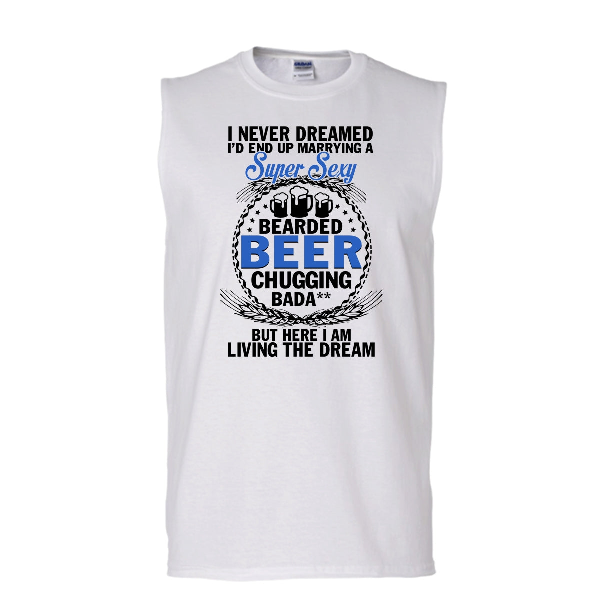 Marrying A Sexy Bearded Beer Chugging T Shirt, Drinking Husband T Shirt, Awesome t-shirts (Men's Cotton Sleeveless)